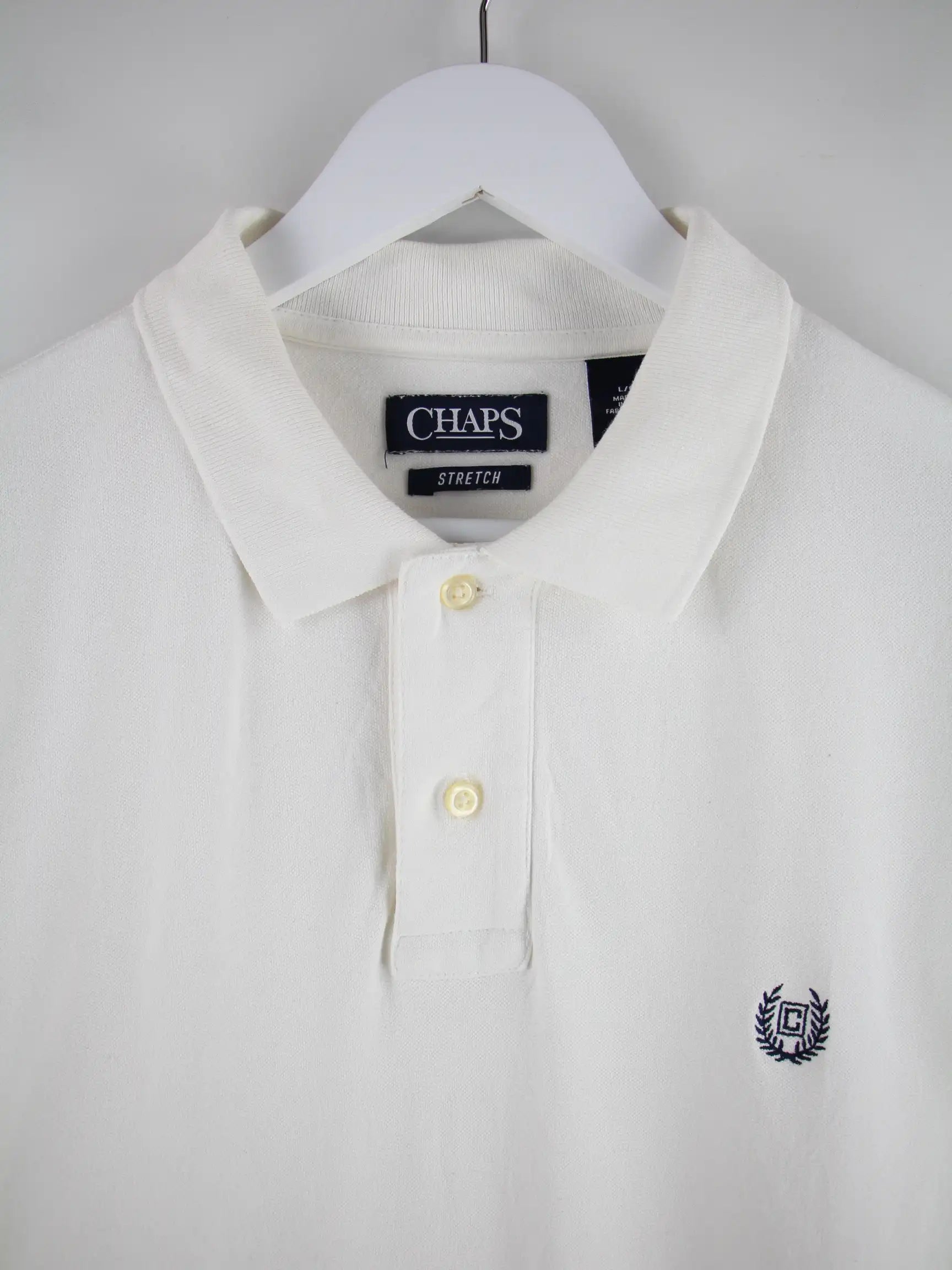 Weißes Poloshirt vom Brand Chaps by Ralph Lauren in Größe L. Es ist aus Baumwolle produziert und in gutem Zustand zu haben.