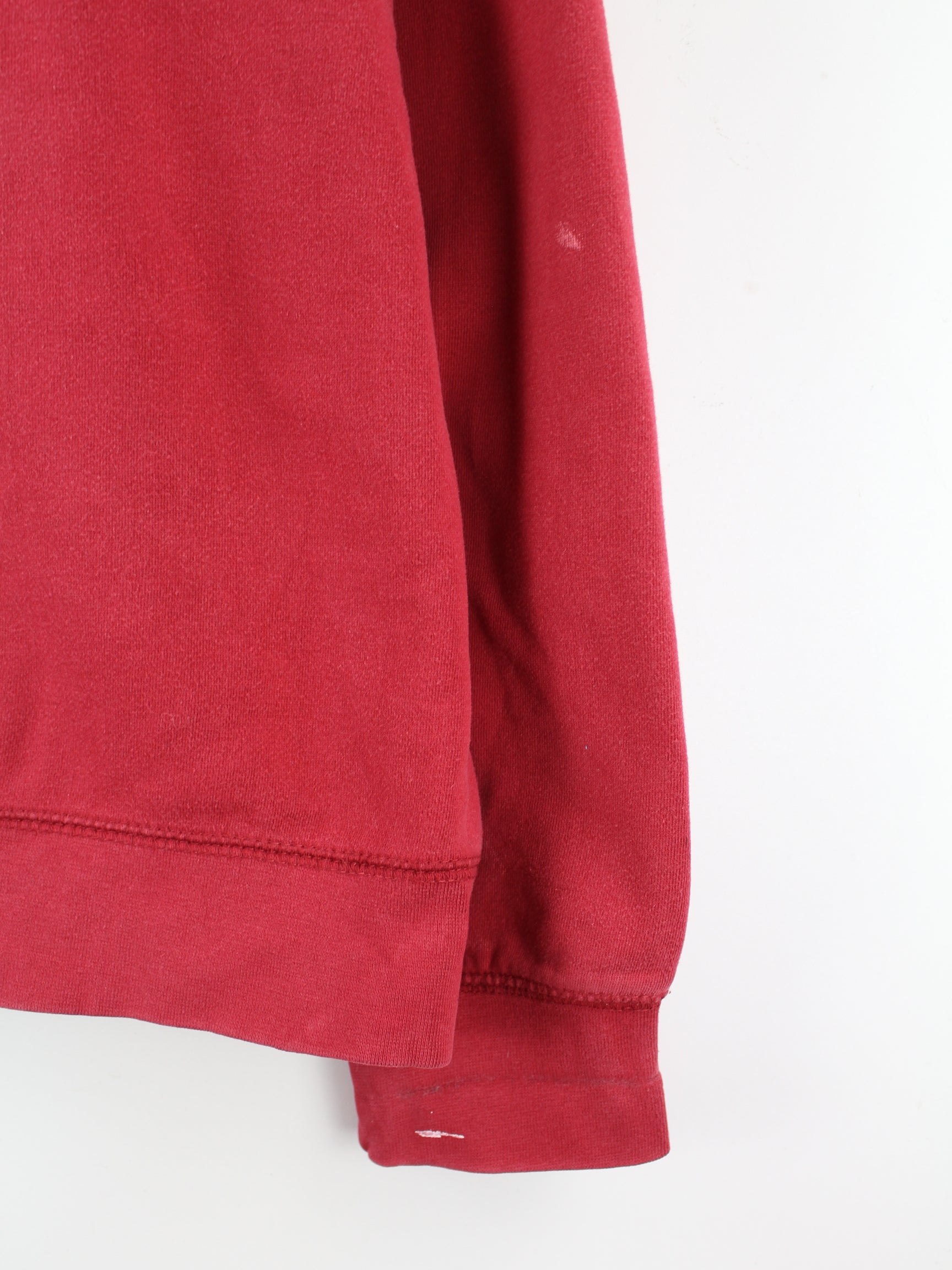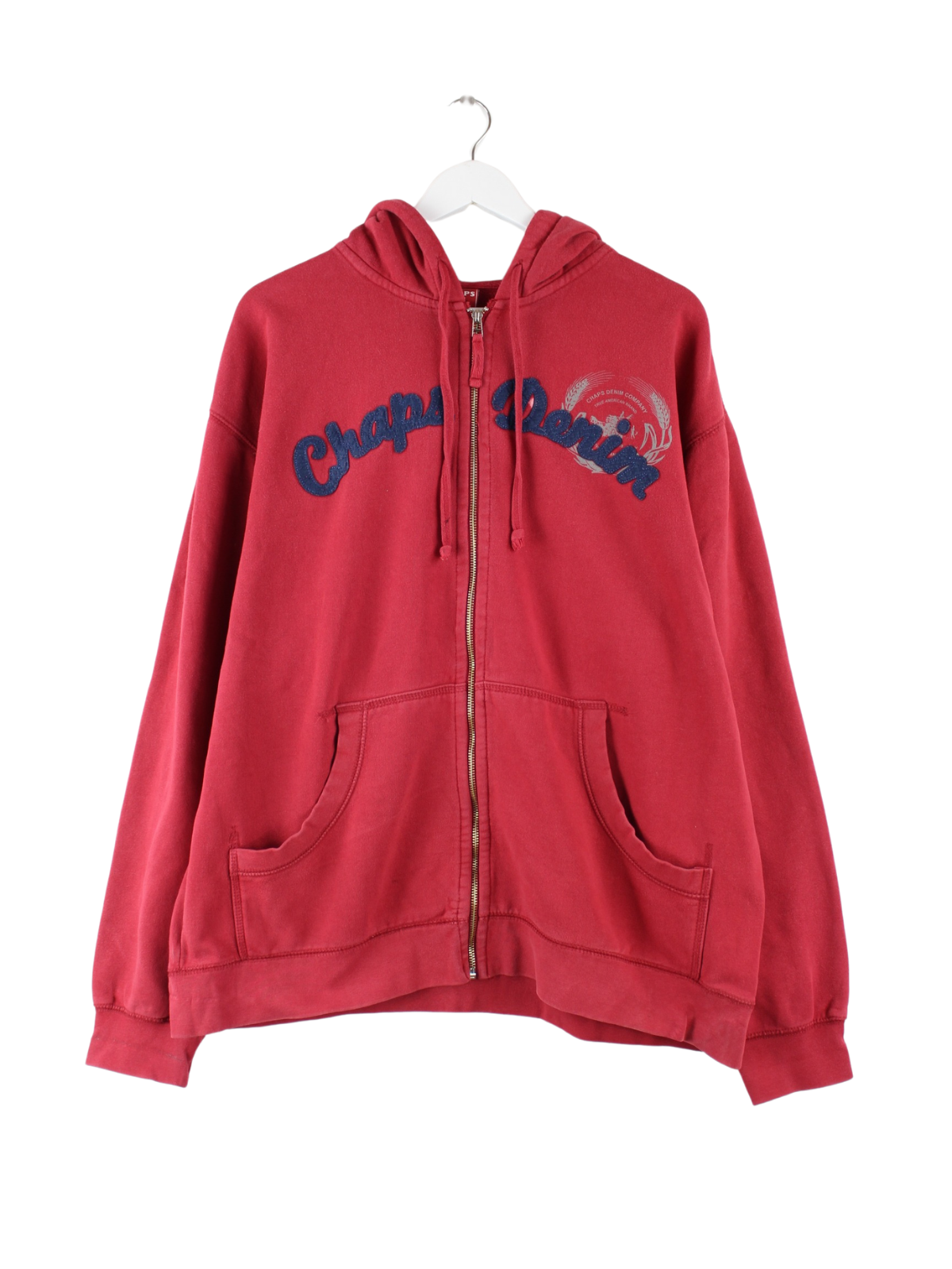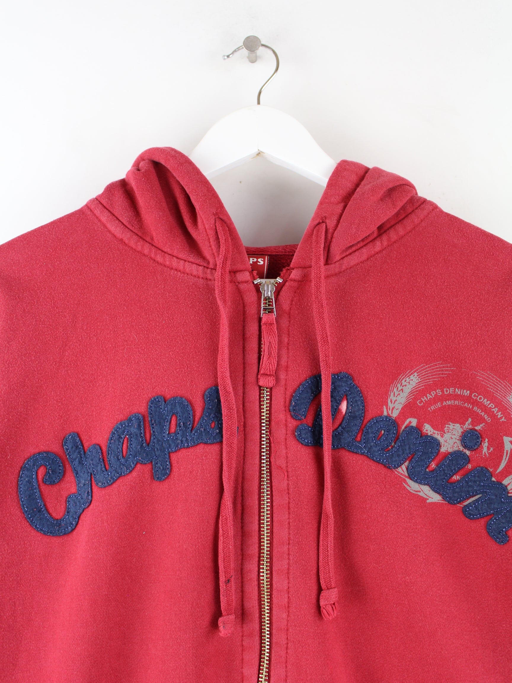 Roter Hoodie mit Stickereien und durchgehendem Reißverschluß vom Brand Chaps by Ralph Lauren in Größe XL. Er ist aus einer Baumwollmischung gemacht und in gutem Zustand im Bestand.
