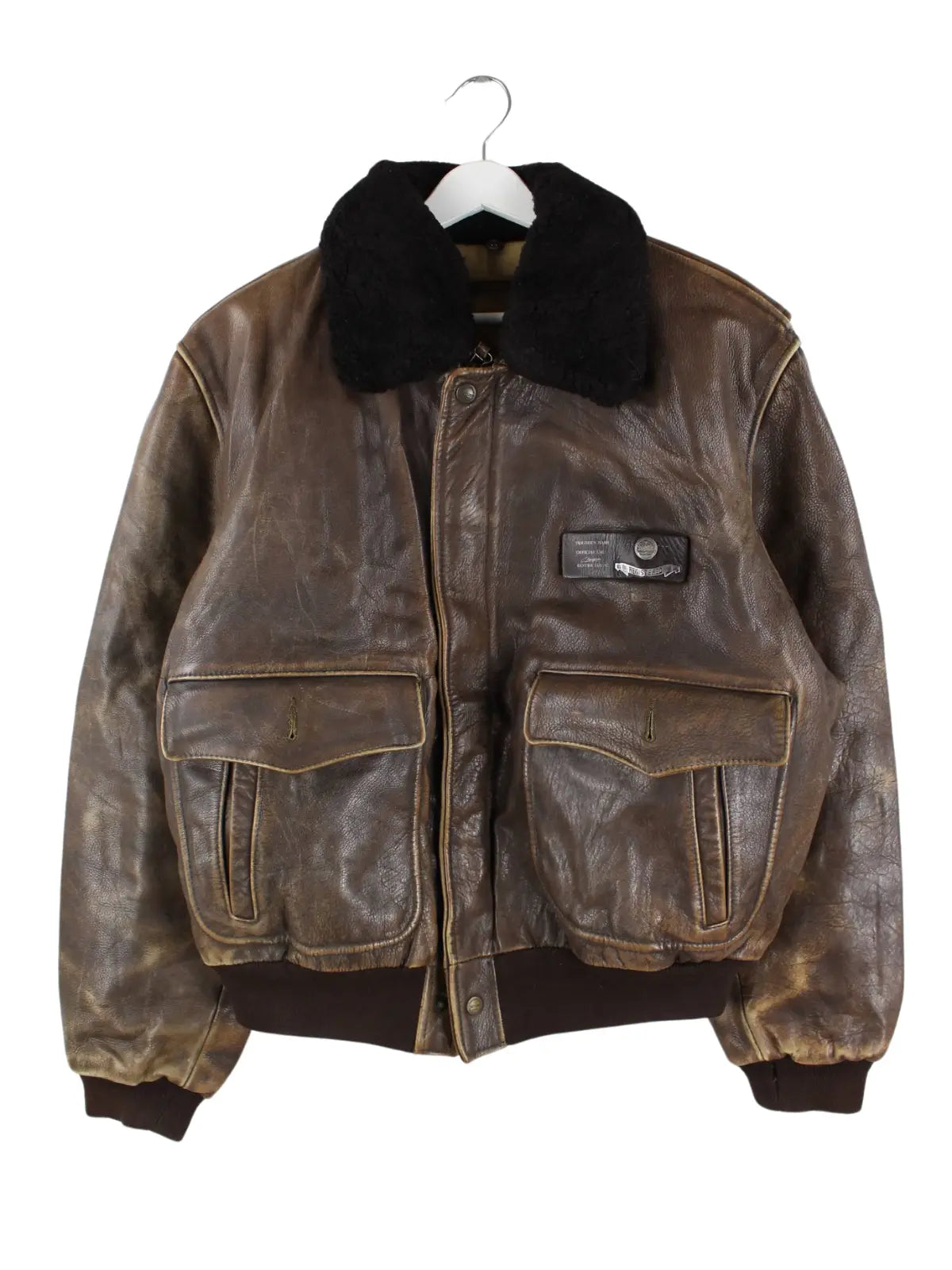 Chevignon 90s Vintage Leder Bomber Jacke Braun L