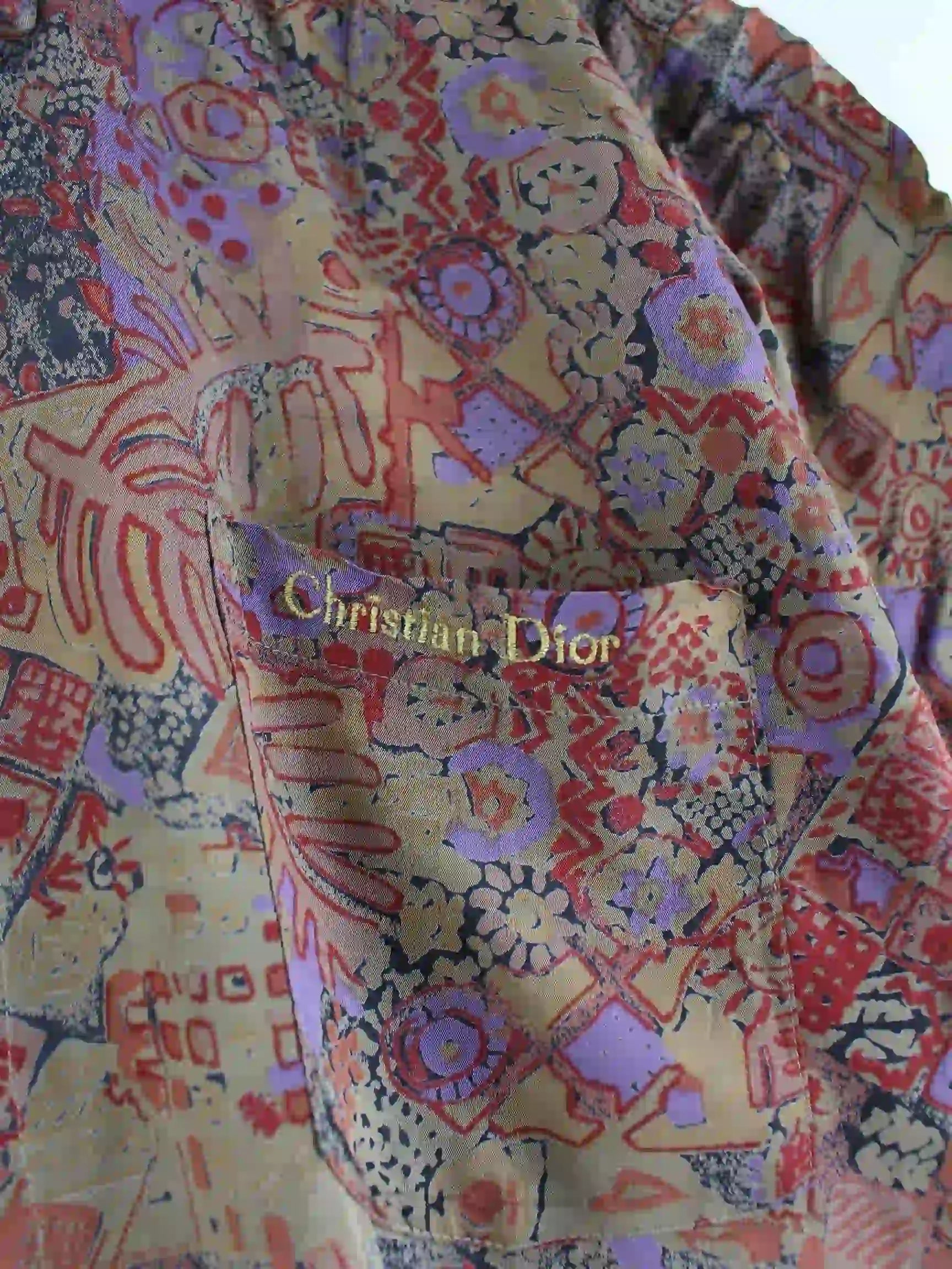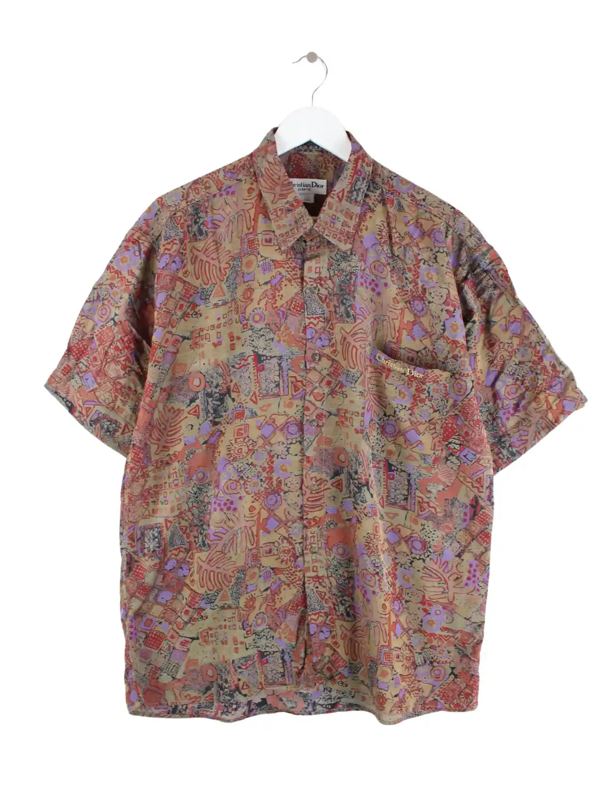 Freizeit Hemd von Christian Dior in Größe XL aus den 80'ern. Es ist aus Seide angefertigt und in bunten Farben auf Lager.