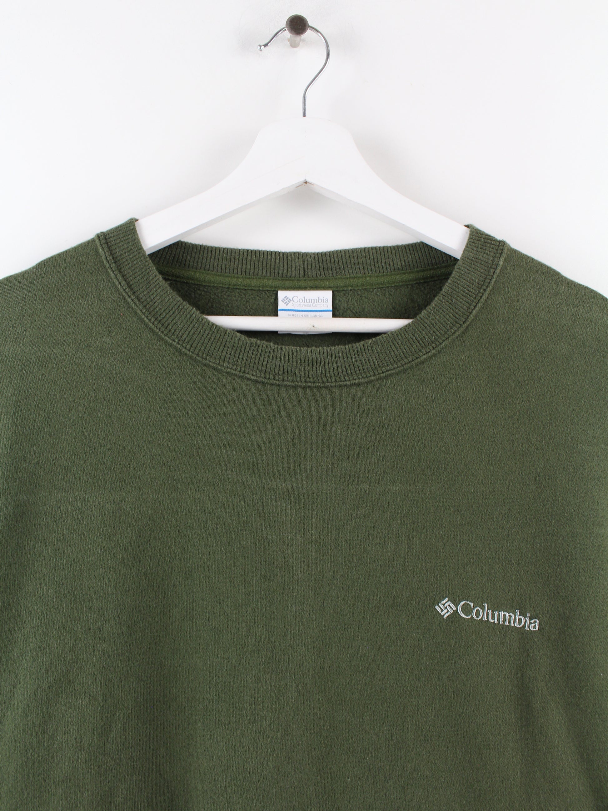 Grüner Basic Sweater der Marke Columbia mit aufgesticktem Logo.