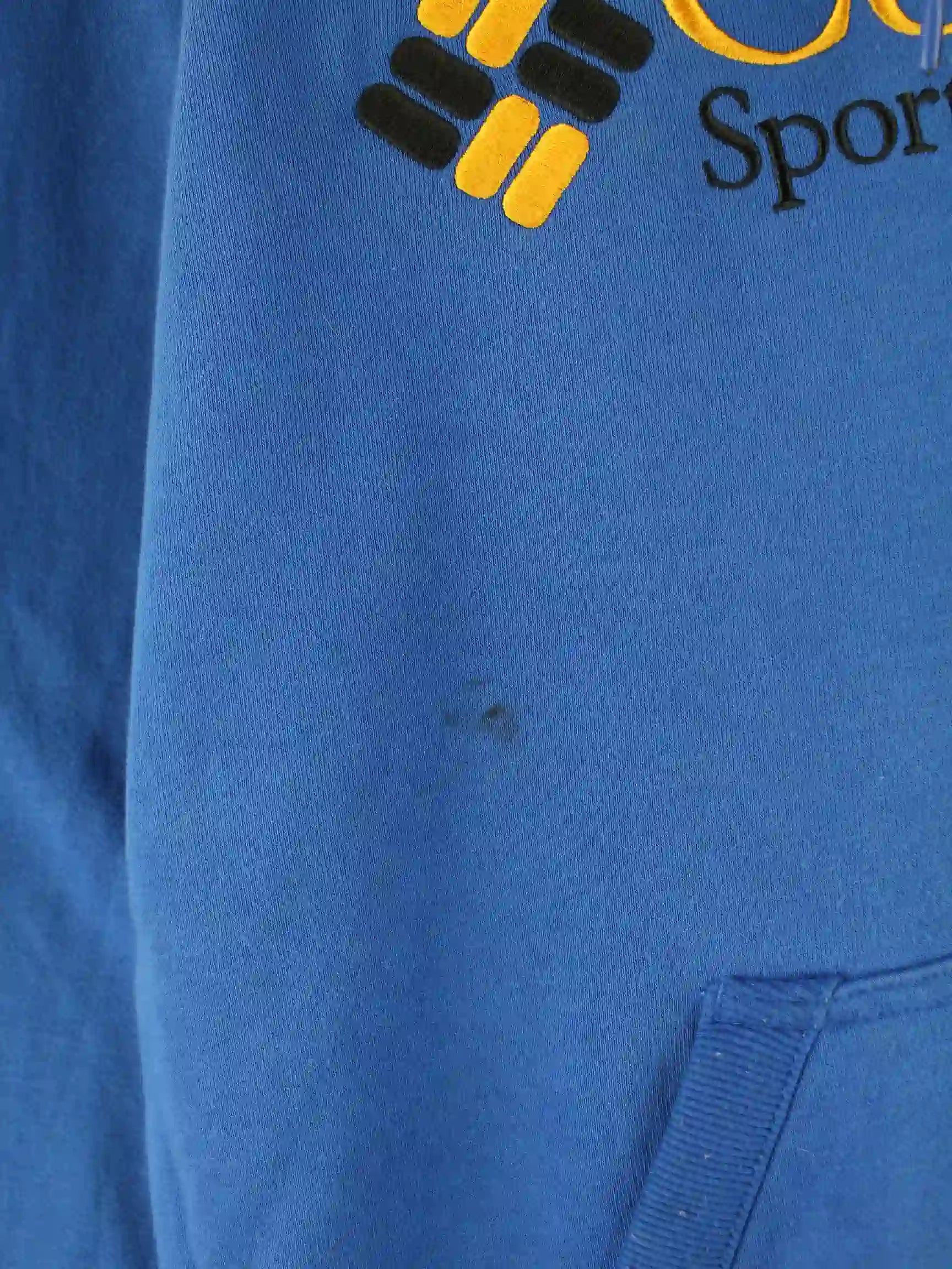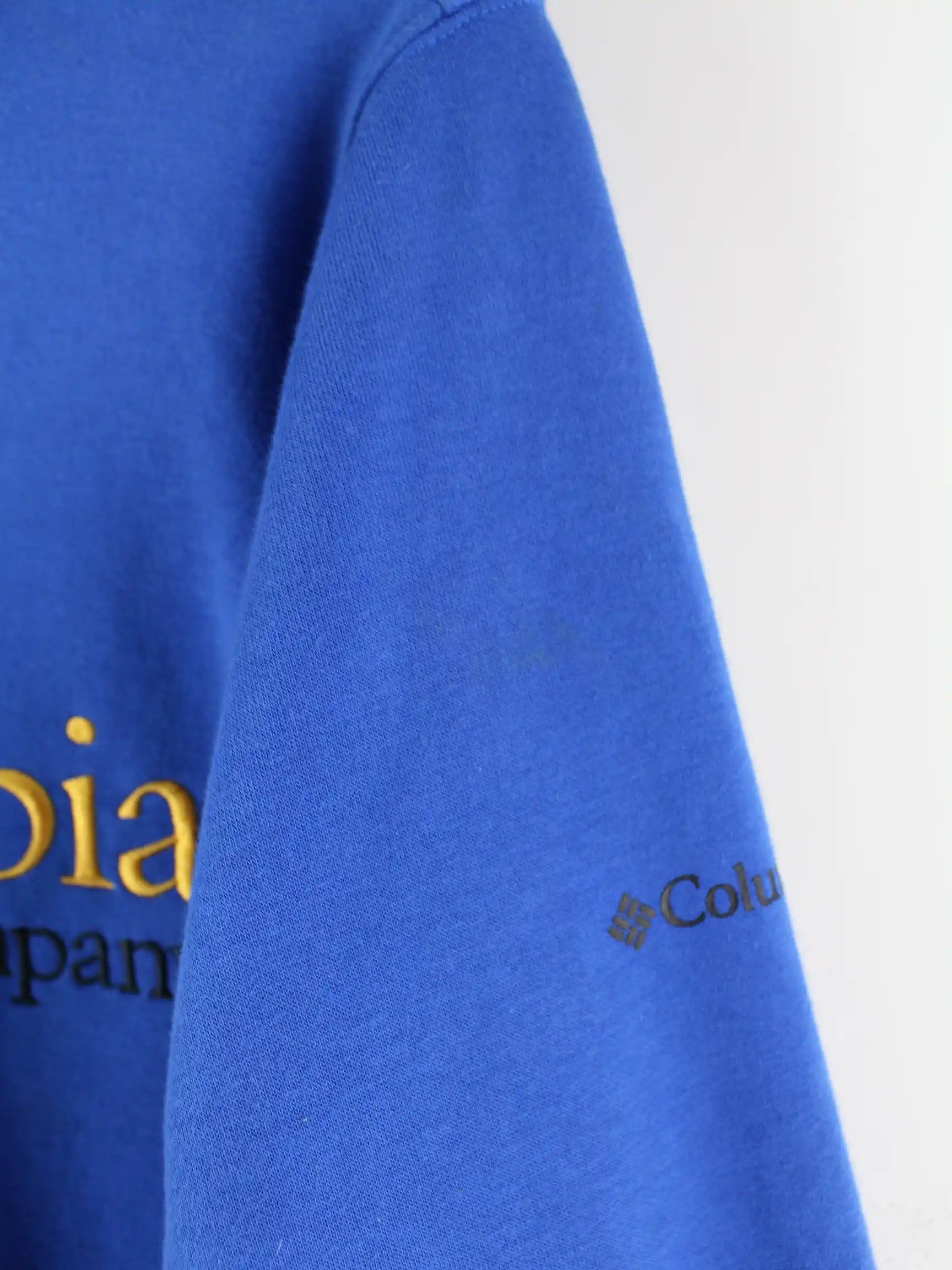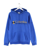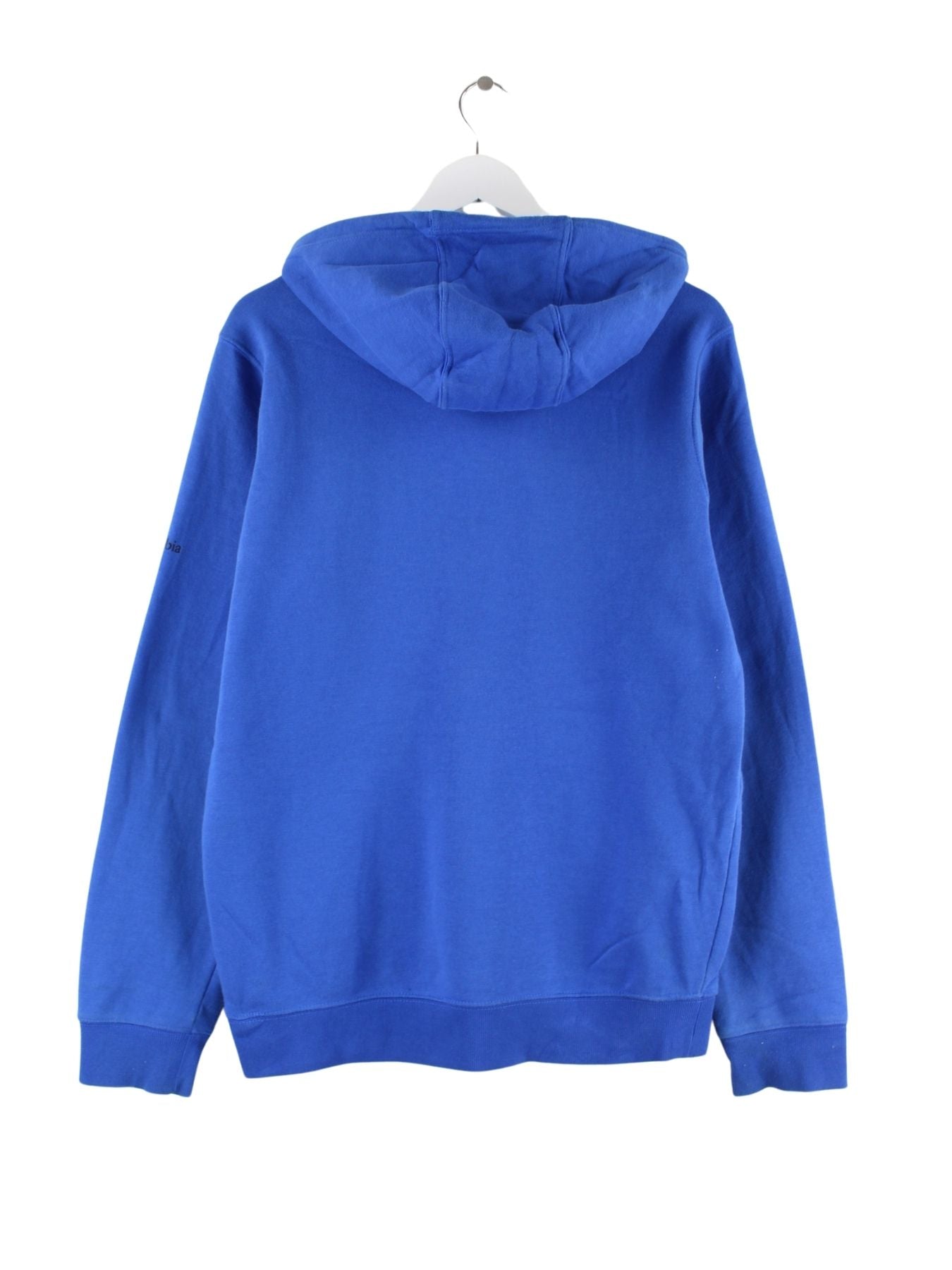 Hoodie des Labels Columbia mit gesticktem Logo in Größe XL. Er ist aus einer Baumwollmischung angefertigt und in Blau im Bestand.