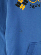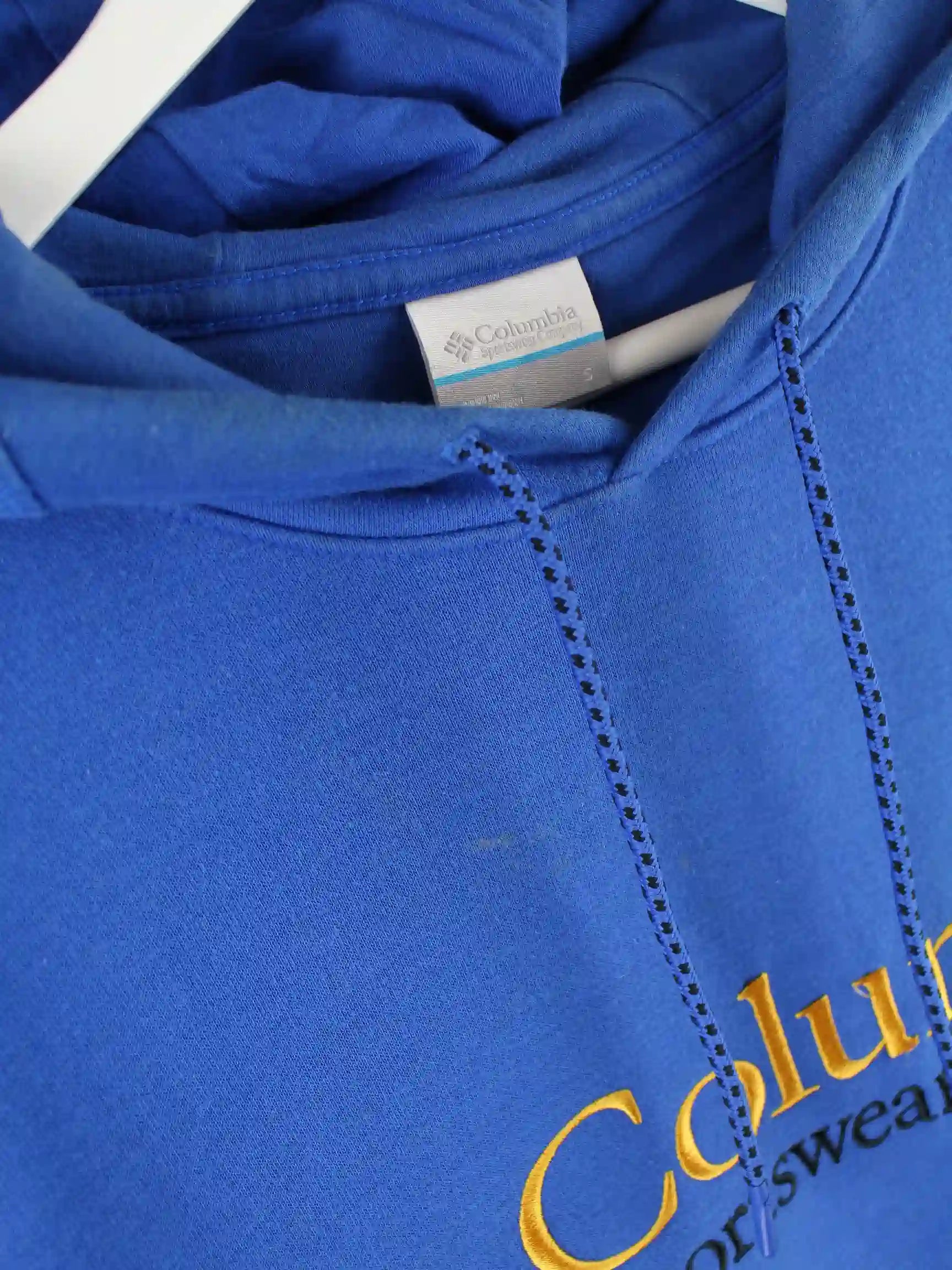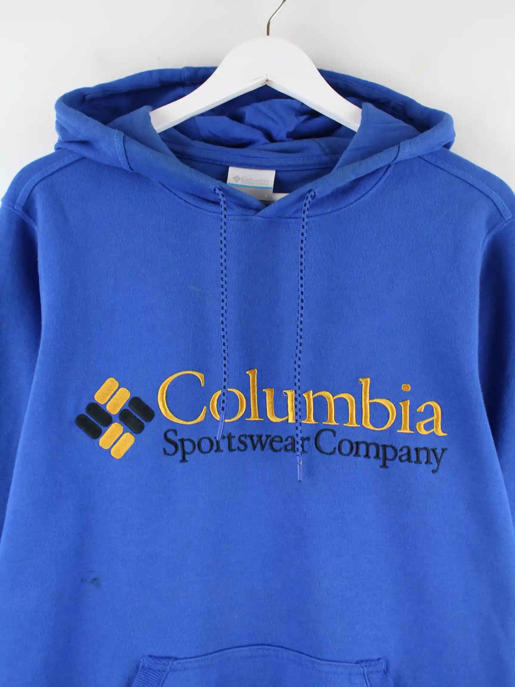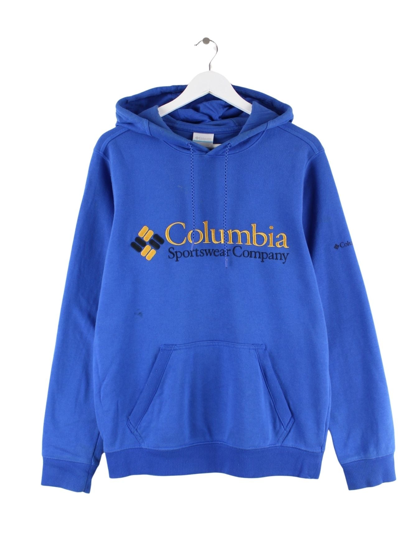 Hoodie des Labels Columbia mit gesticktem Logo in Größe XL. Er ist aus einer Baumwollmischung angefertigt und in Blau im Bestand.