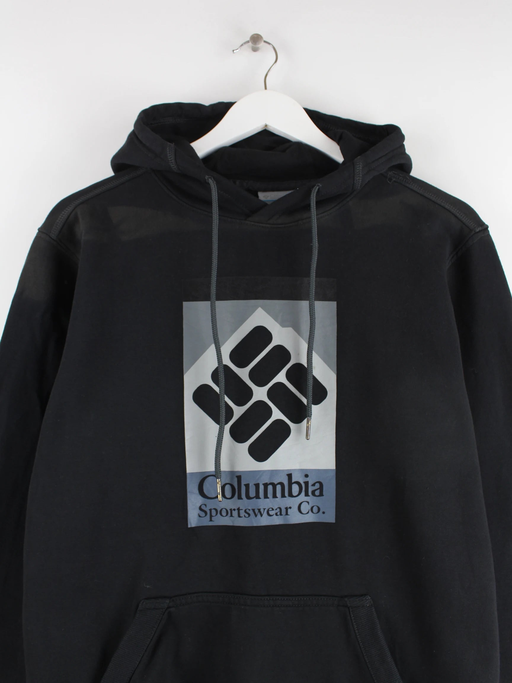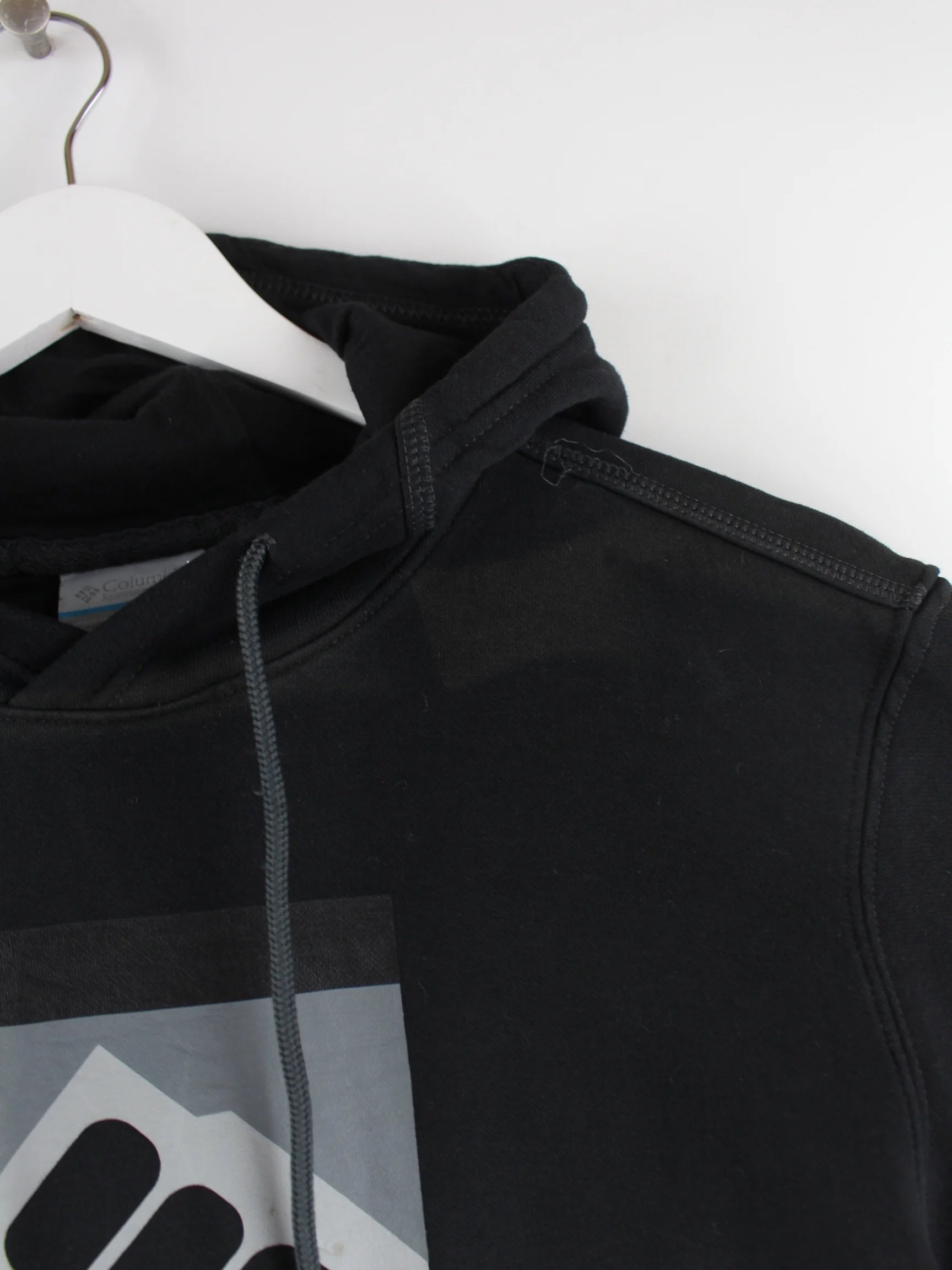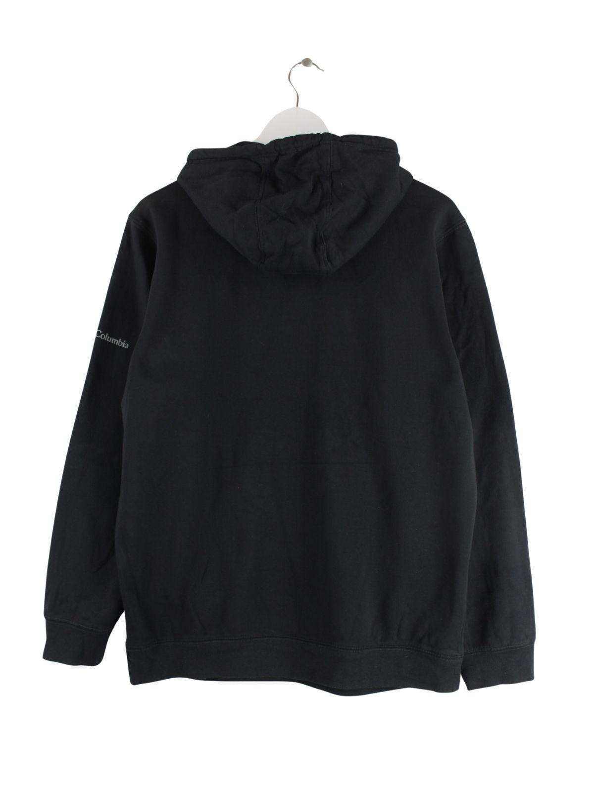 Schwarzer Hoodie von Columbia in Größe M. Er ist aus einer Baumwollmischung angefertigt. Den Zustand würden wir als 'In Ordnung' bezeichnen (vergl. Bilder).Mit schönem Print.