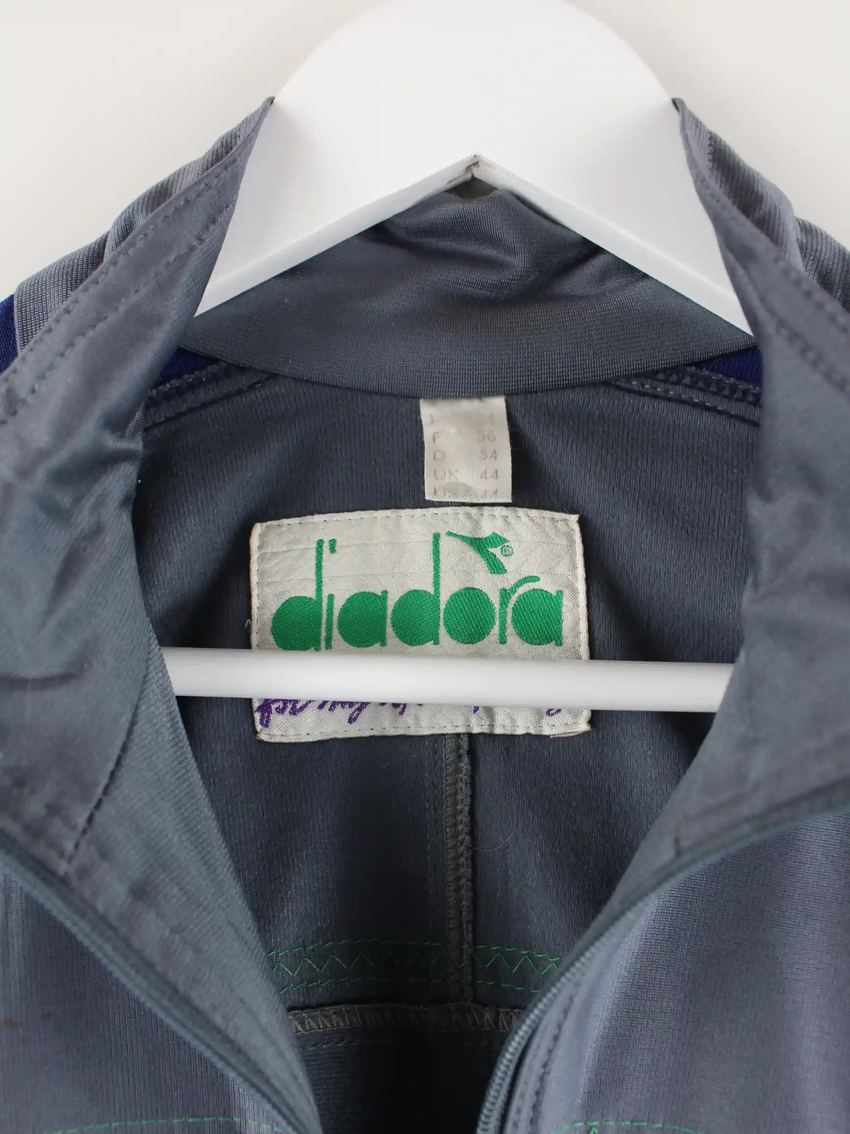 Trainingsjacke der Brand Diadora in Größe XL aus den 90'ern. Sie ist aus Synthetik angefertigt und in Grau im Angebot.