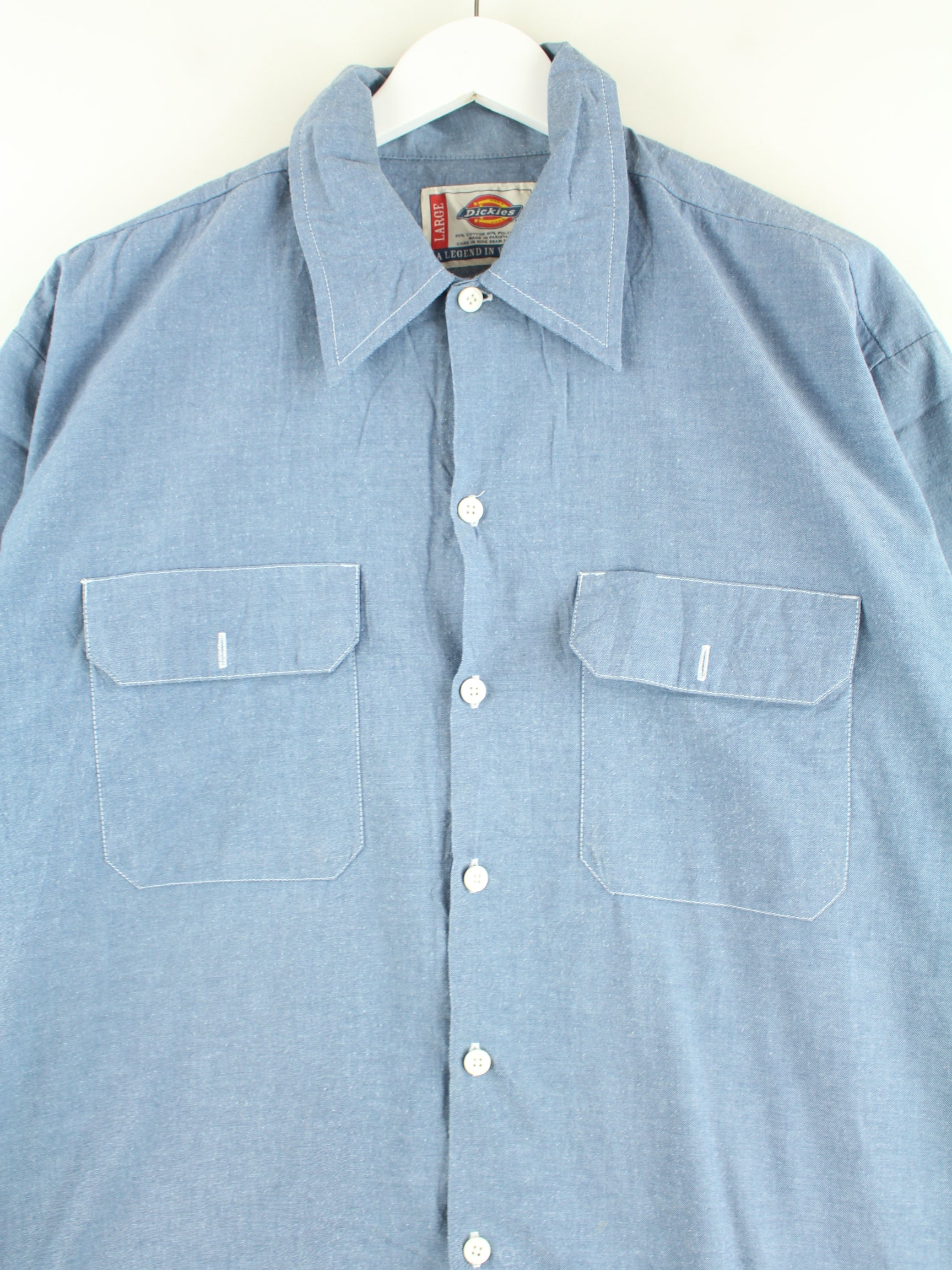 Freizeit Hemd vom Label Dickies in Größe L aus Anfang der 2000'er. Es ist aus Baumwolle gefertigt und in Blau lieferbar.