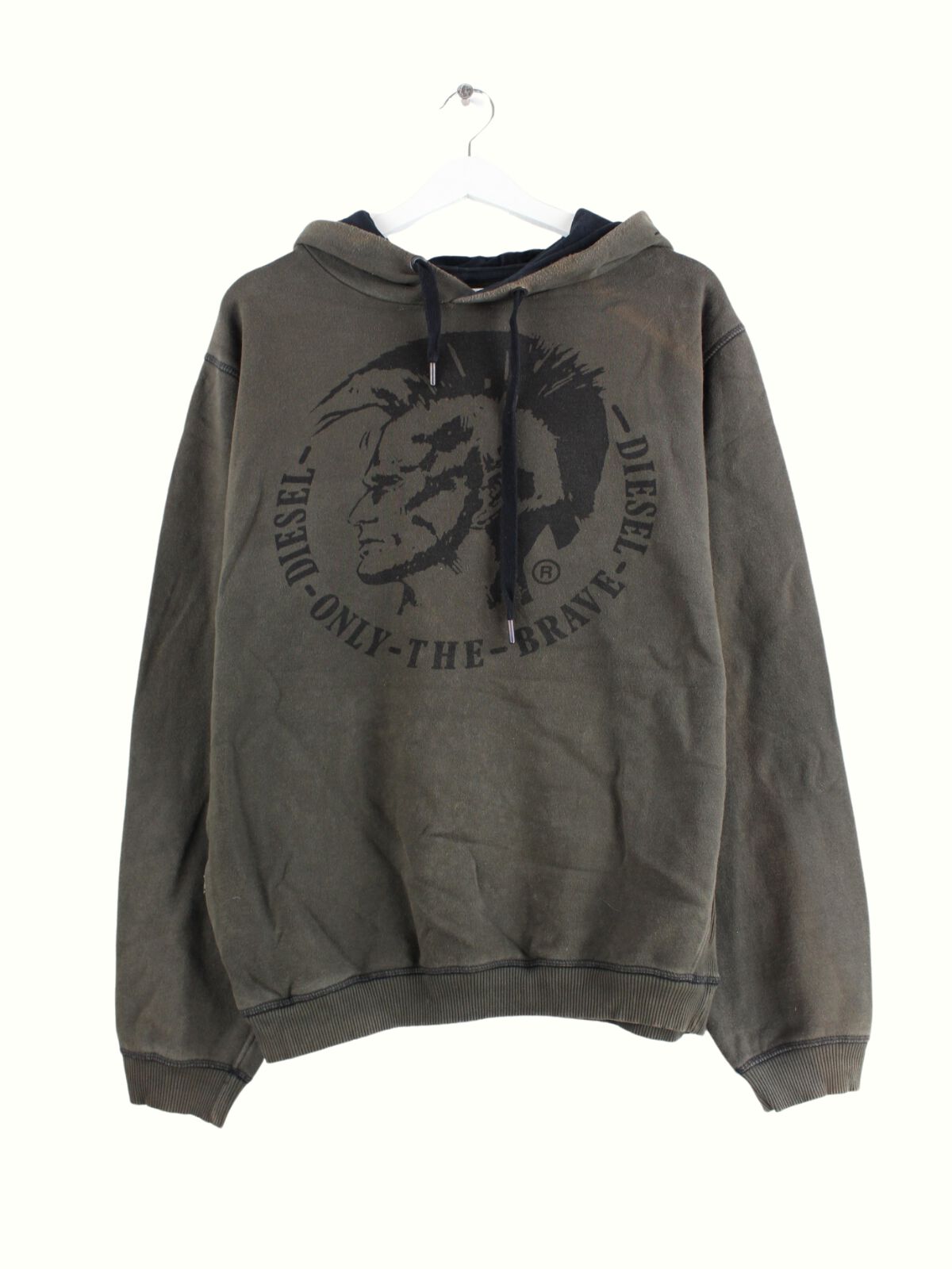 Brauner Hoodie des Labels Diesel in Größe L. Er ist aus einer Baumwollmischung gefertigt und in gutem Zustand bei uns zu bekommen. Mit schickem Apache Print.