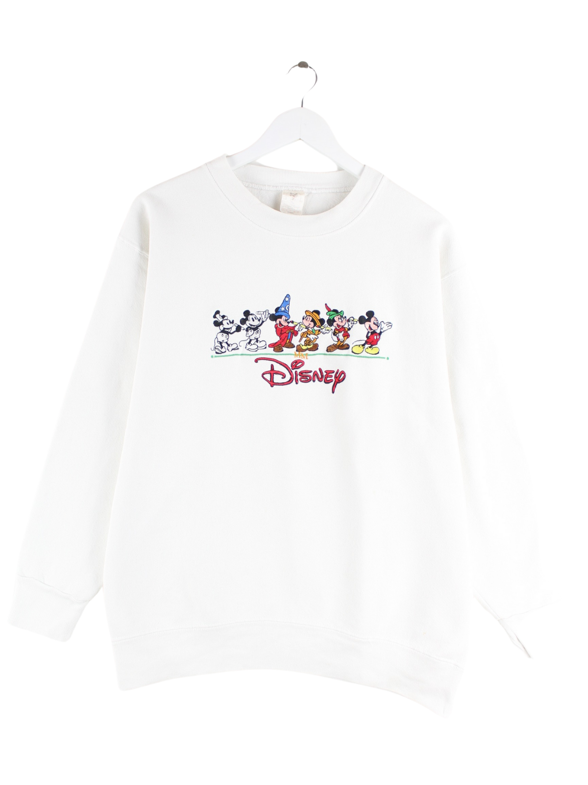 Disney 80s Vintage Mickey Mouse History Embroidered Sweater Weiß S