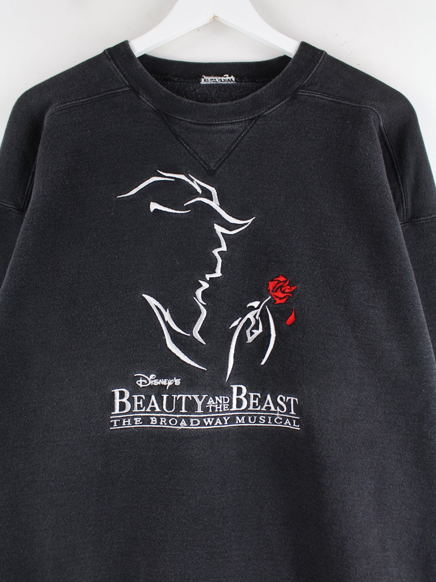 Disney 90s Vintage Beauty & The Beast Embroidered Sweater Schwarz XL