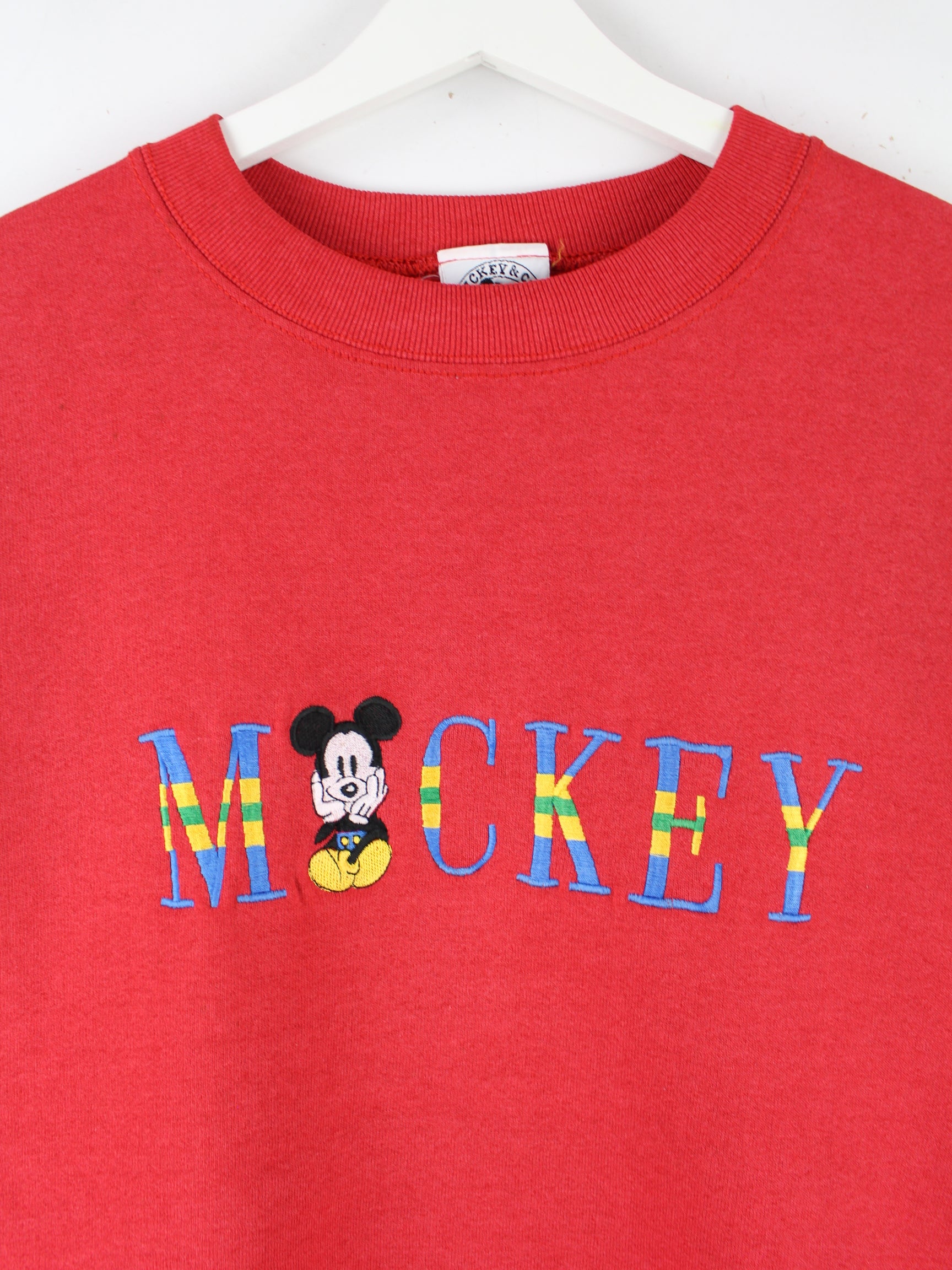 Disney 90s Vintage Embroidered Mickey Mouse Sweater Rot L