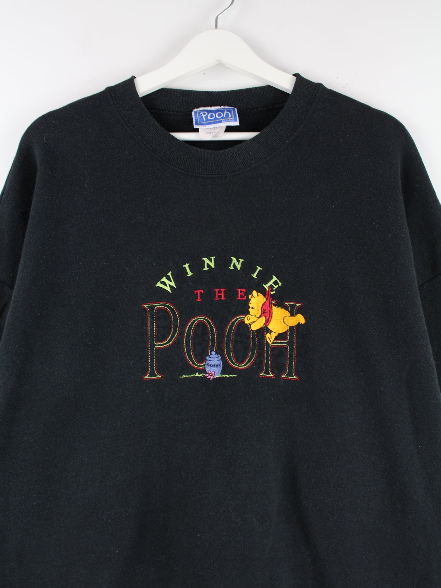 Disney 90s Vintage Winnie Pooh Embroidered Sweater Schwarz 3XL