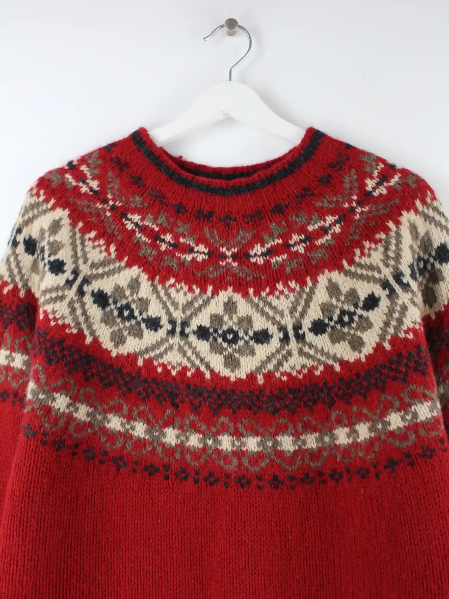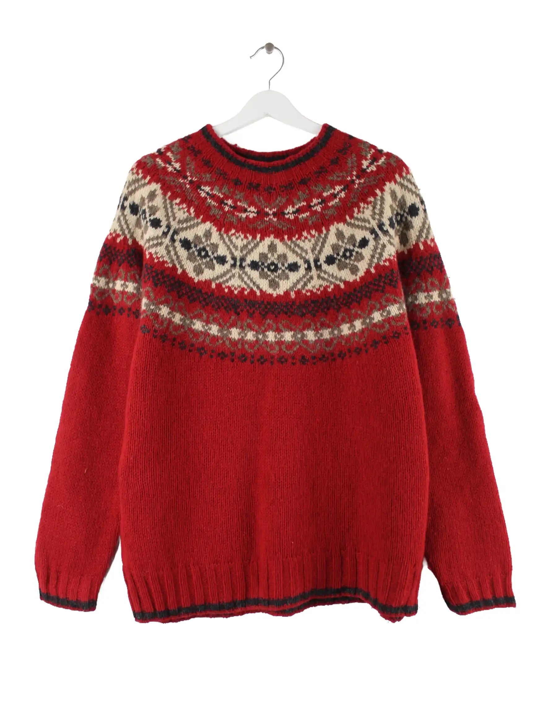 Eddie Bauer Damen 00s Pattern Woll Pullover Rot L