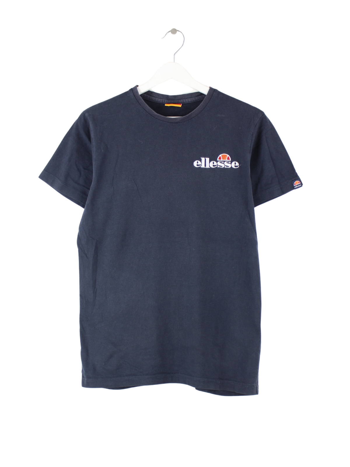 Blaues T-Shirt mit Stick der Brand Ellesse in Größe S. Es ist aus Baumwolle und in sehr gutem Zustand zu bekommen.