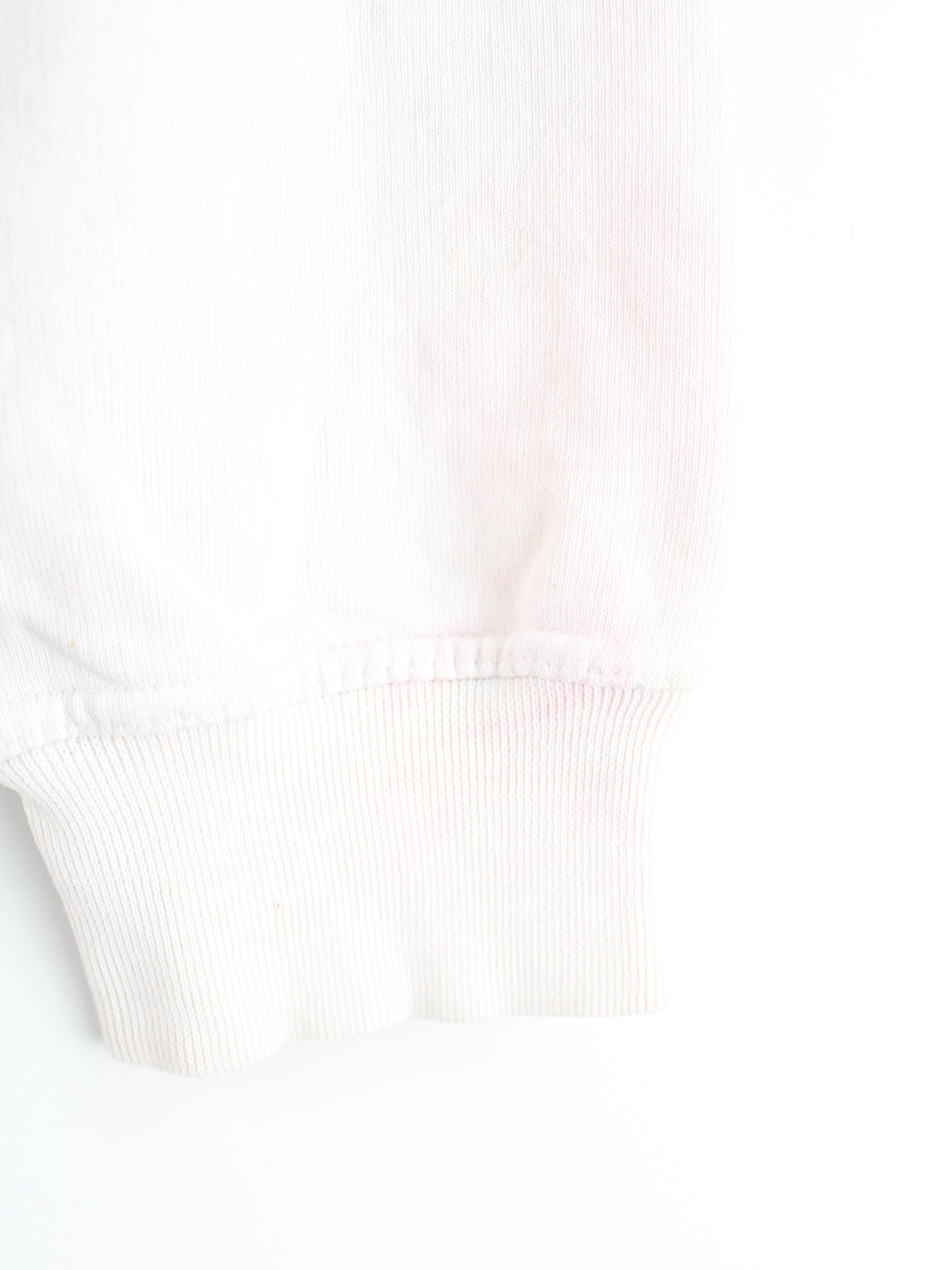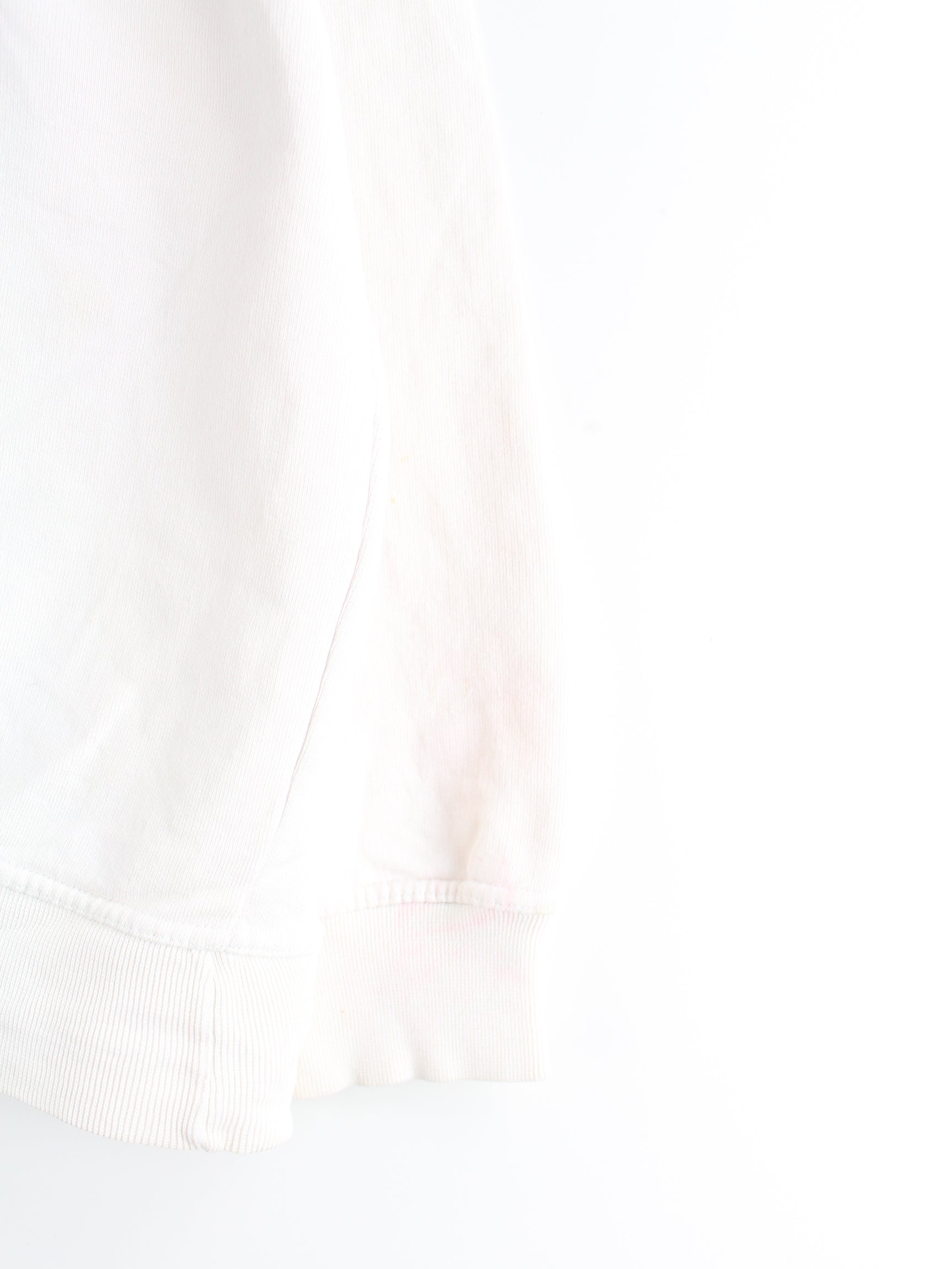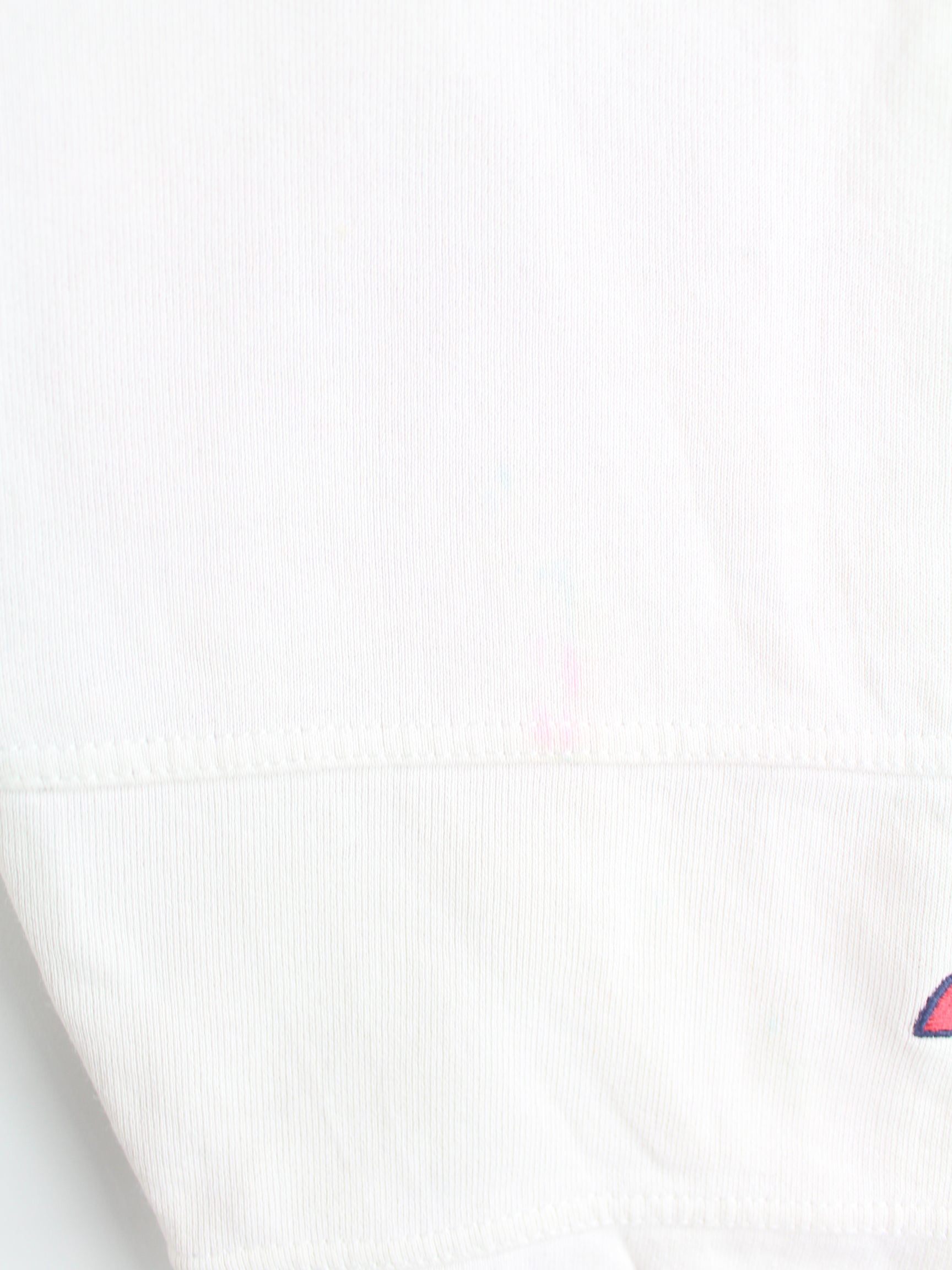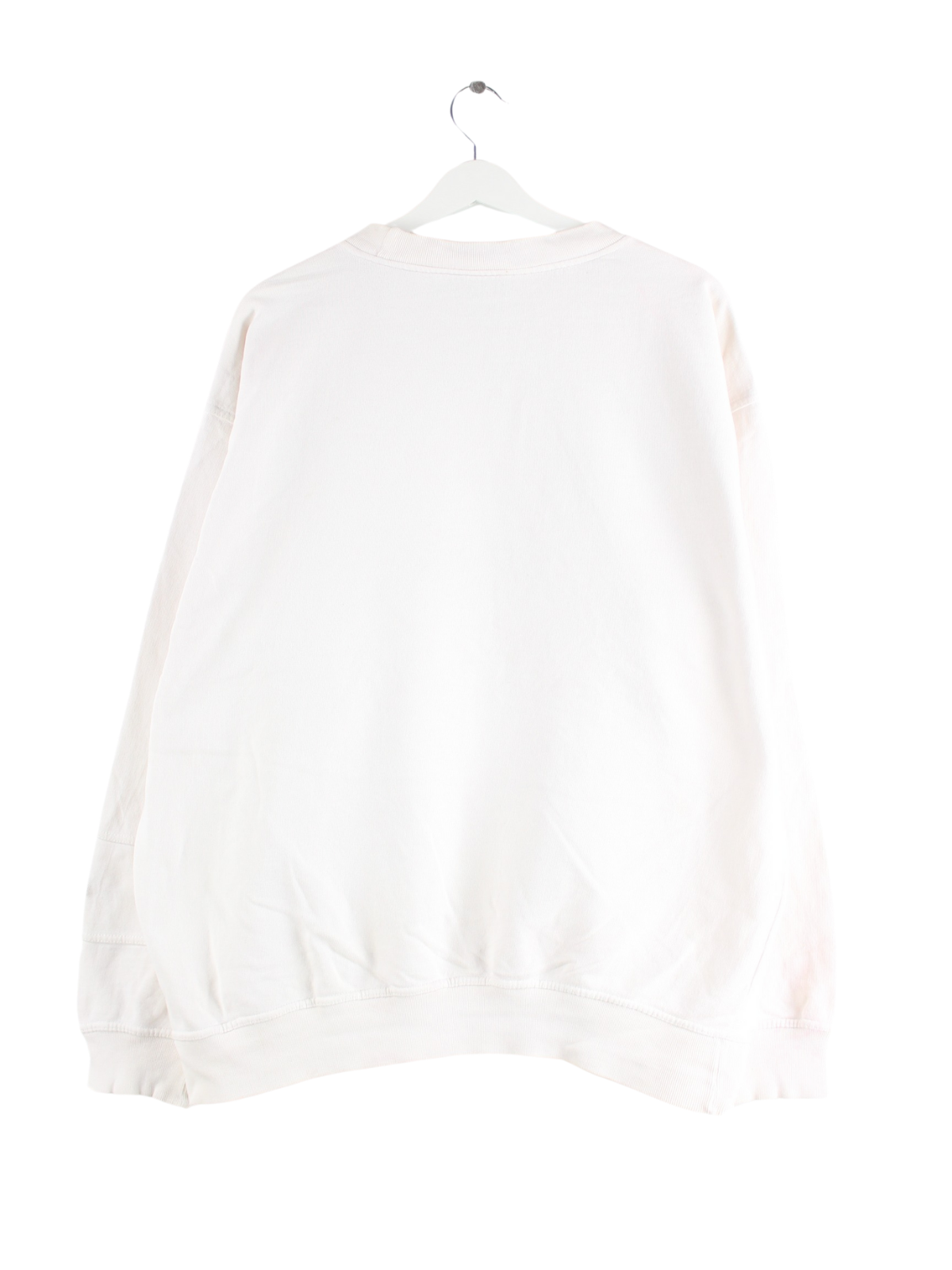 Sweater des Labels Ellesse mit gestickten Motiven in Größe XL aus Anfang der 2000'er. Er ist aus einer Baumwollmischung produziert und in Weiß bei uns vorrätig.