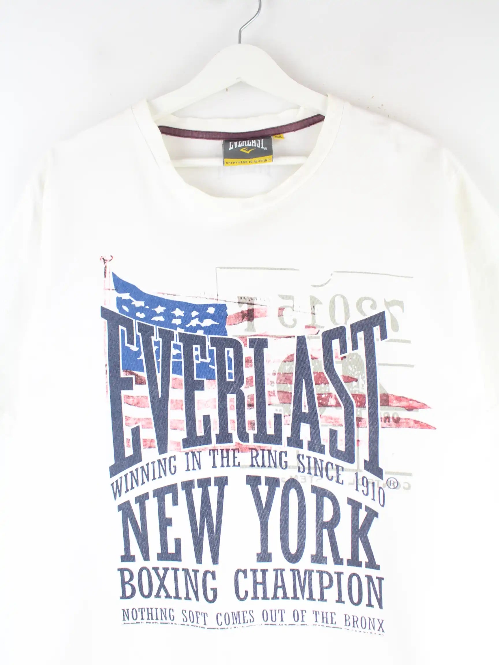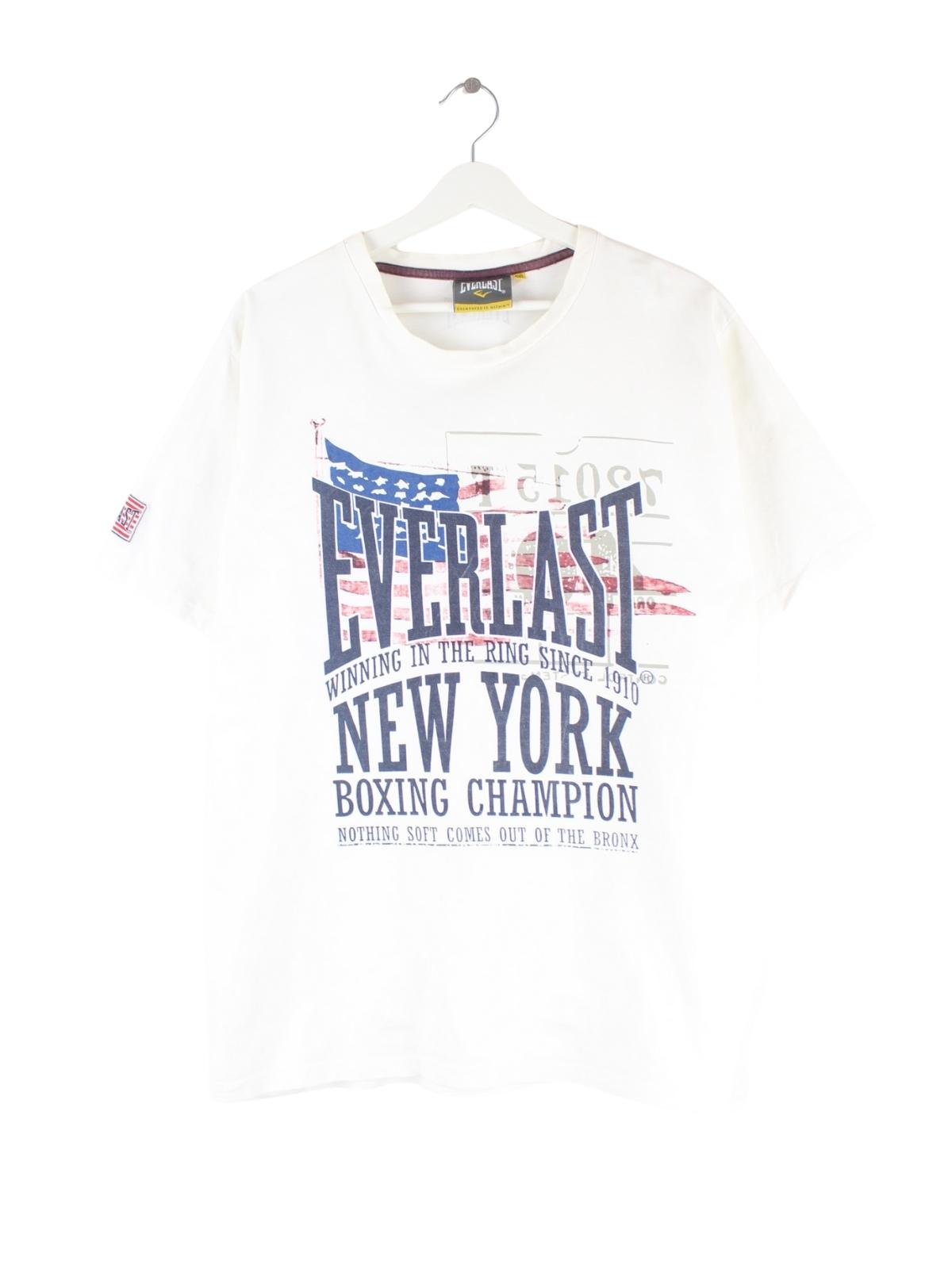 T-Shirt vom Brand Everlast in Größe XXL. Es ist aus Baumwolle angefertigt und in Weiß bei uns zu bekommen. Mit schickem Print.