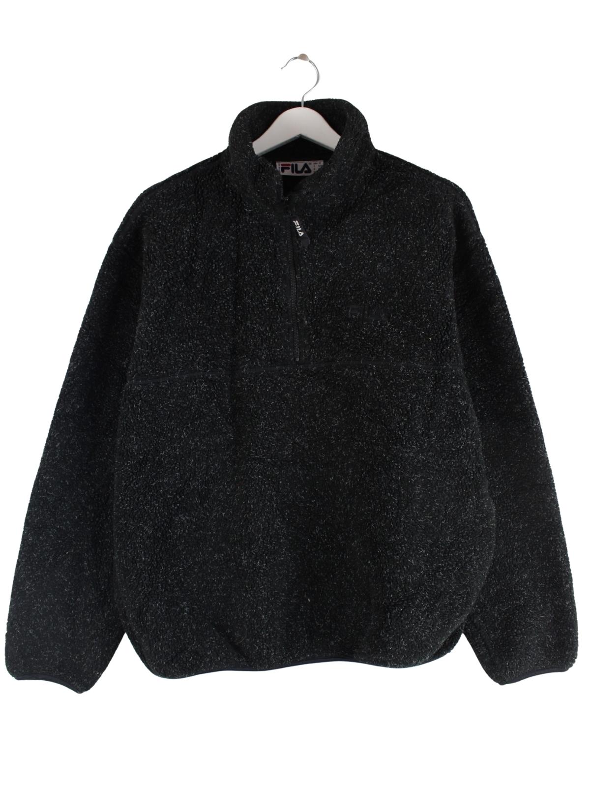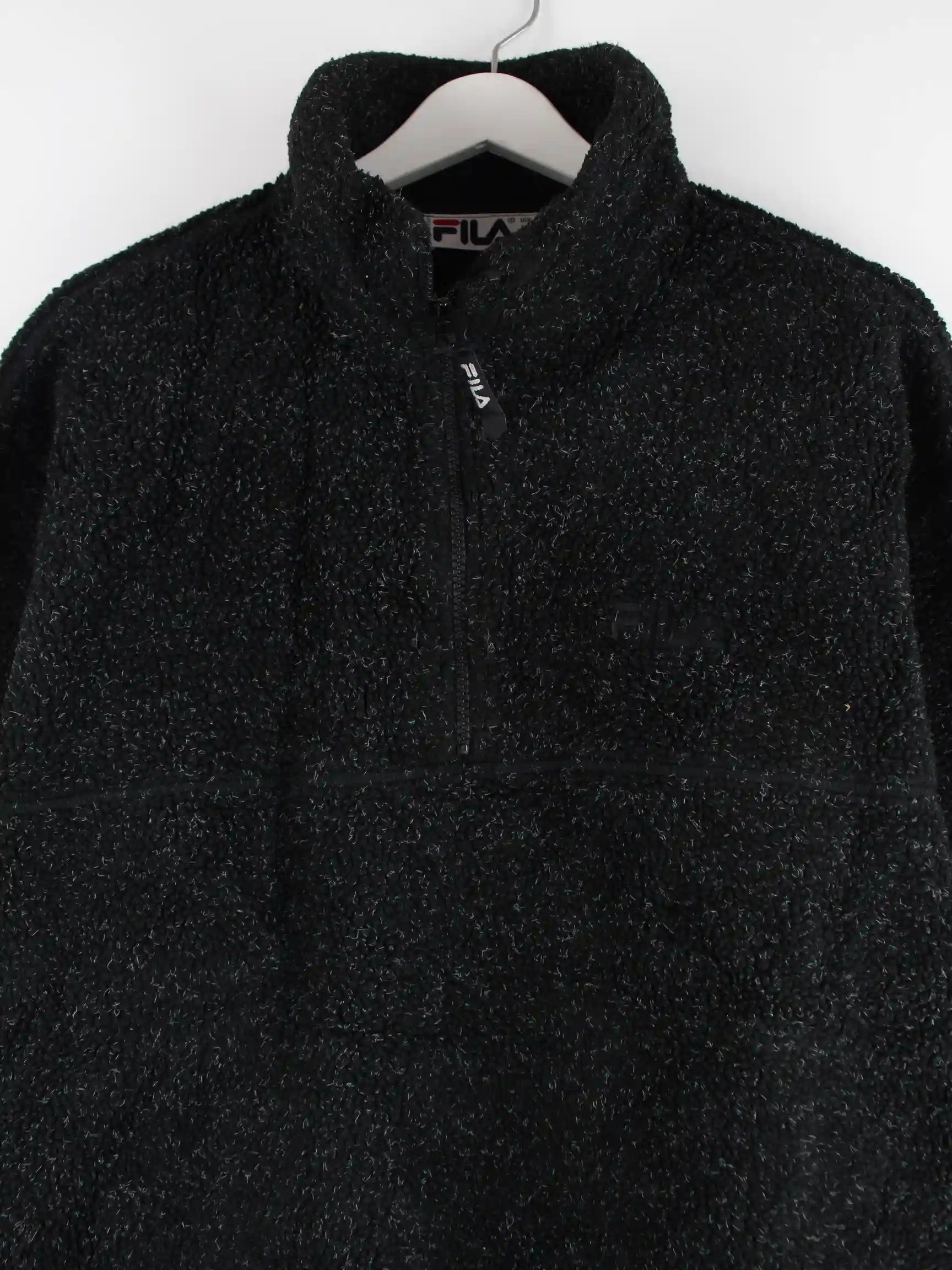 Fila 90s Vintage Half Zip Teddy Fleece Sweater Schwarz M