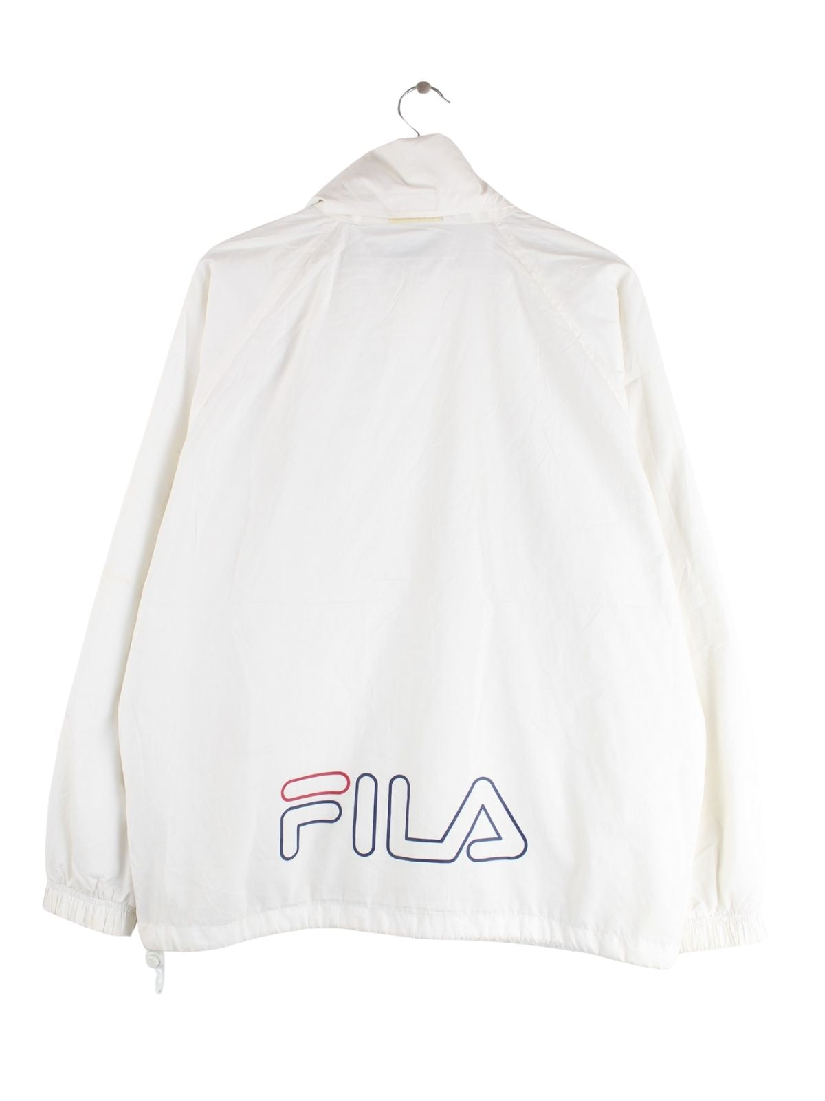 Weiße Trainingsjacke der Marke Fila aus den 90'ern in Größe XL. Sie ist aus Synthetik produziert. Den Zustand würden wir als 'In Ordnung' bezeichnen (vergl. Bilder).Mit seltenem Vintage Print.