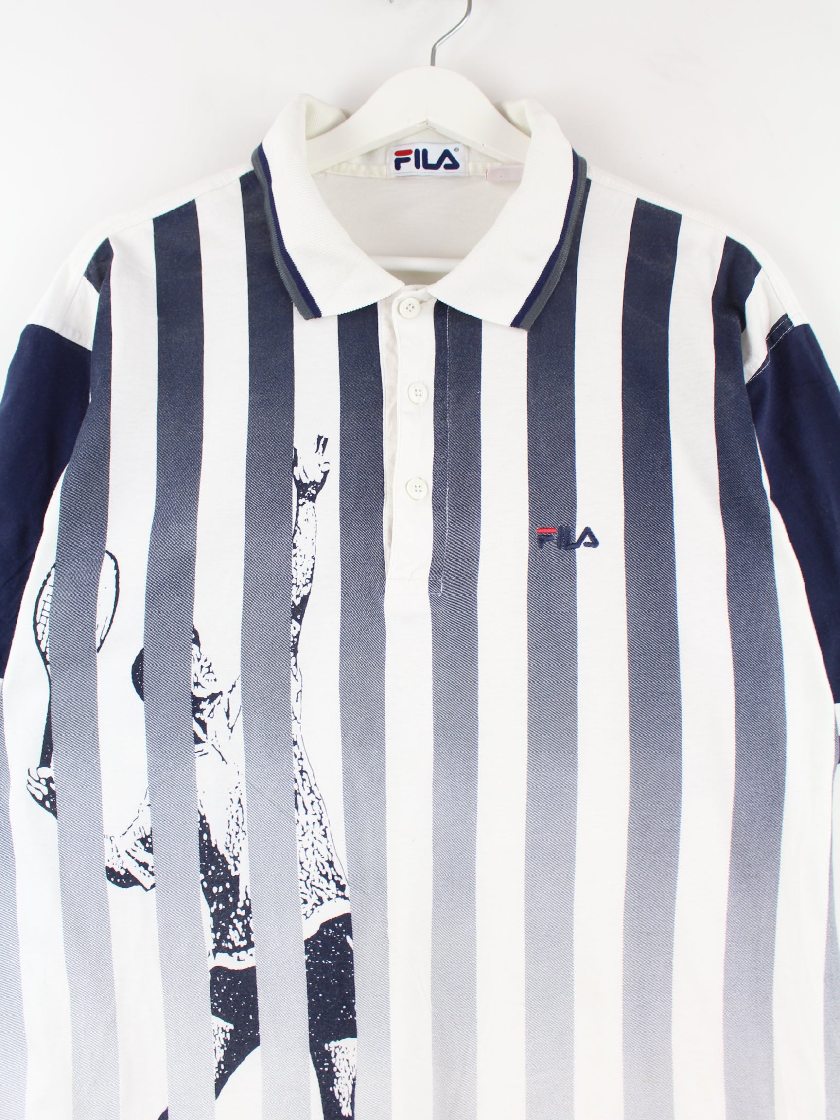 Fila 90s Vintage Tennis Print Polo Weiß M