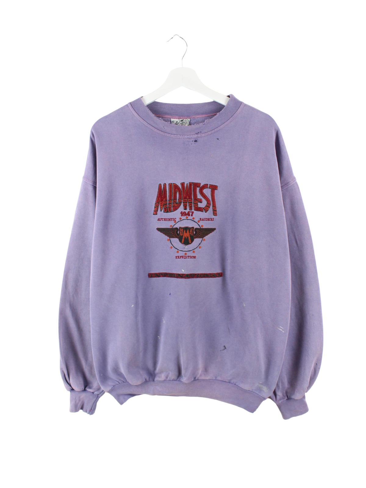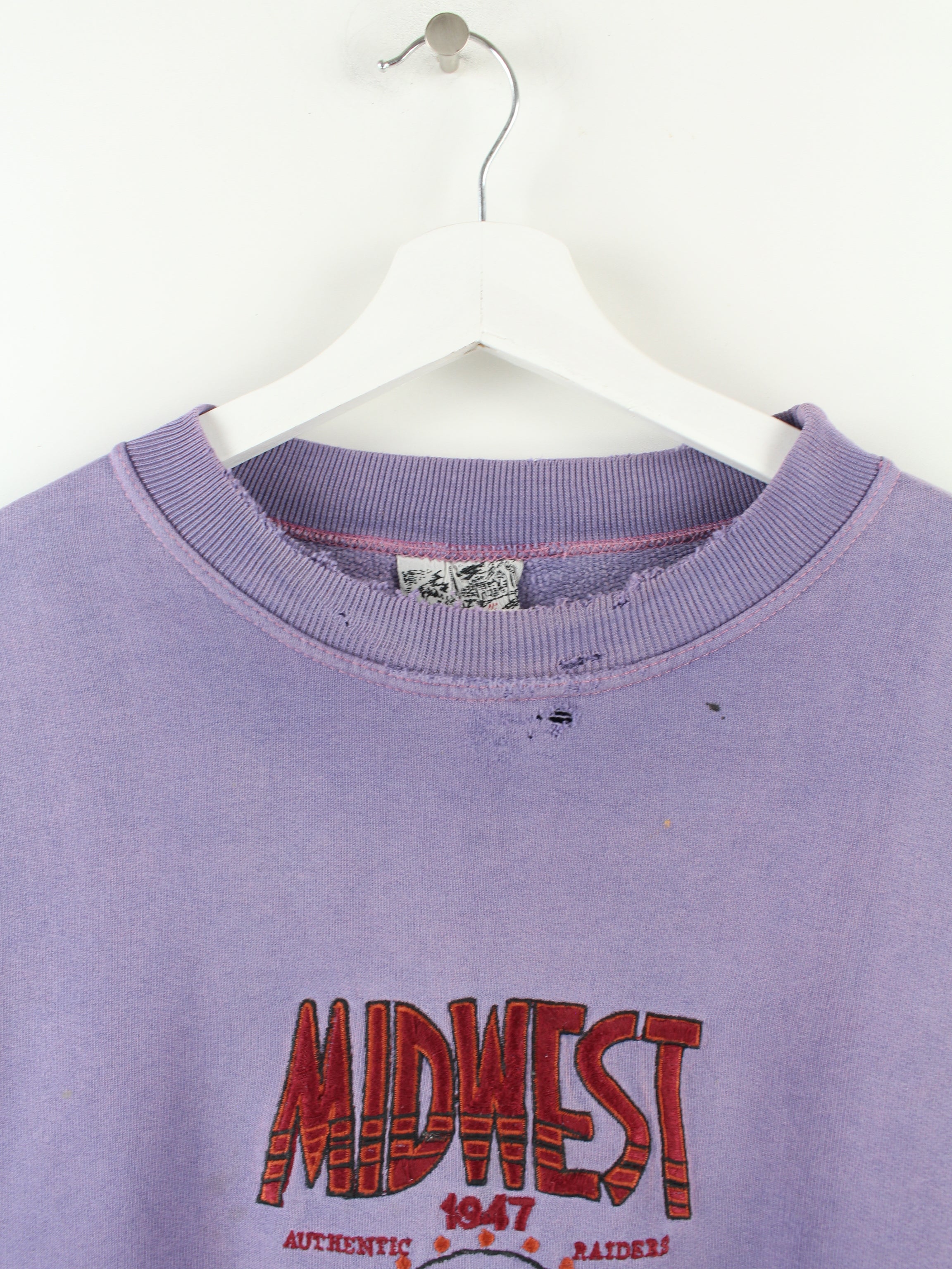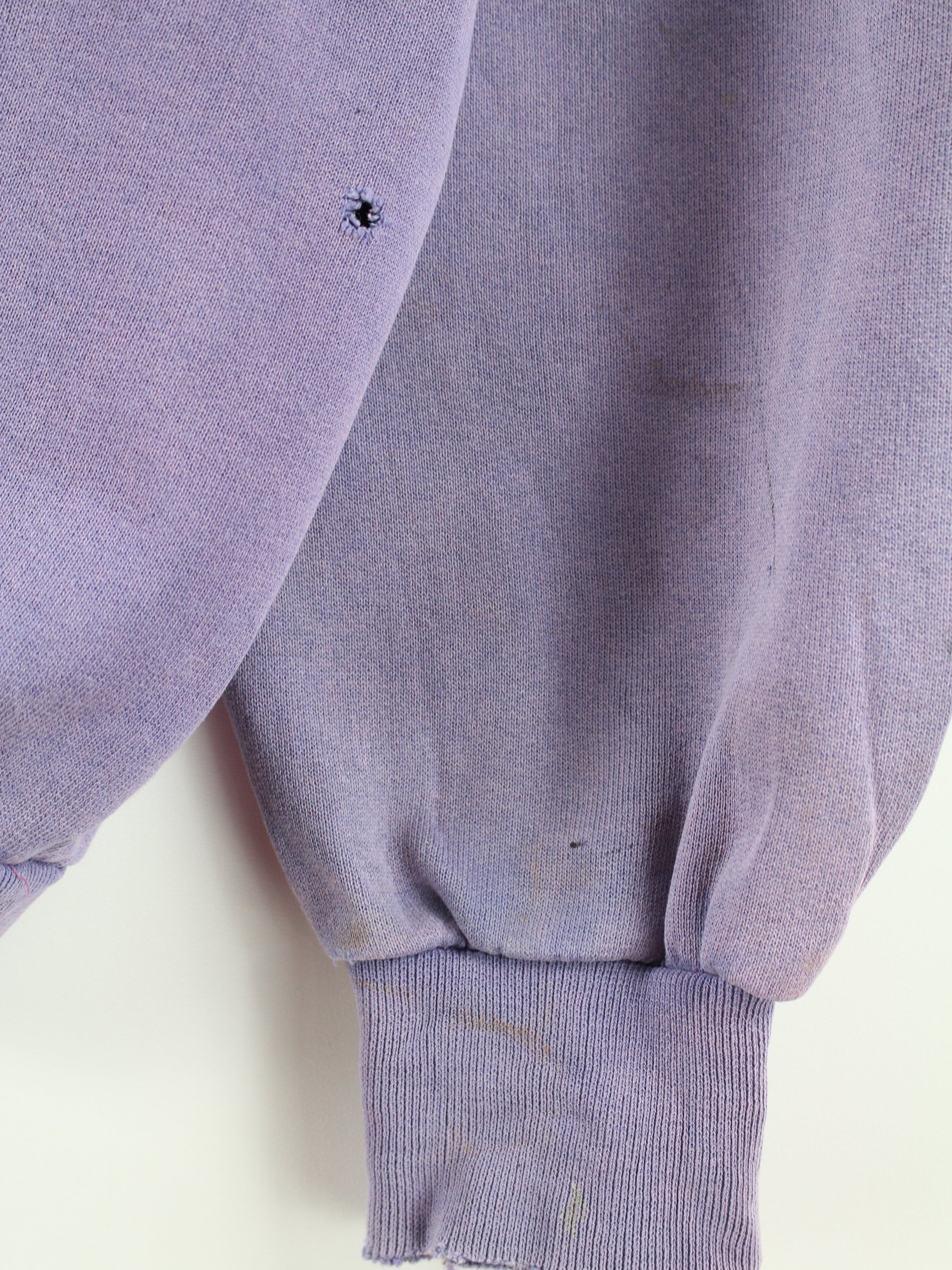Lila Vintage 80er Jahre Sweater mit aufgesticktem Motiv der Marke Fiorelli.