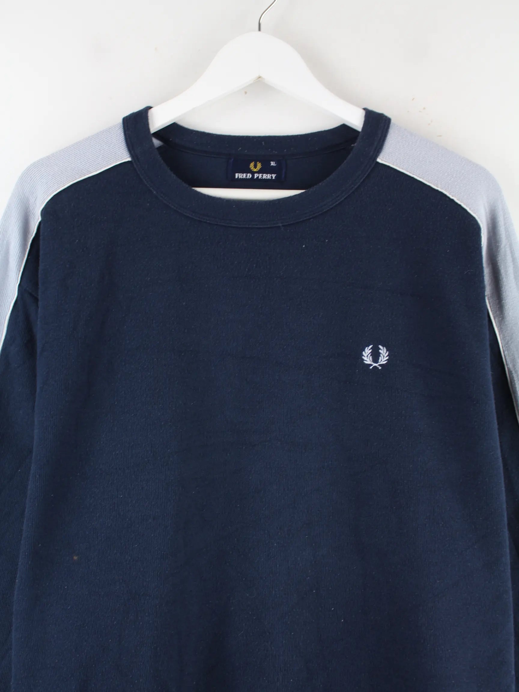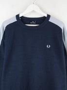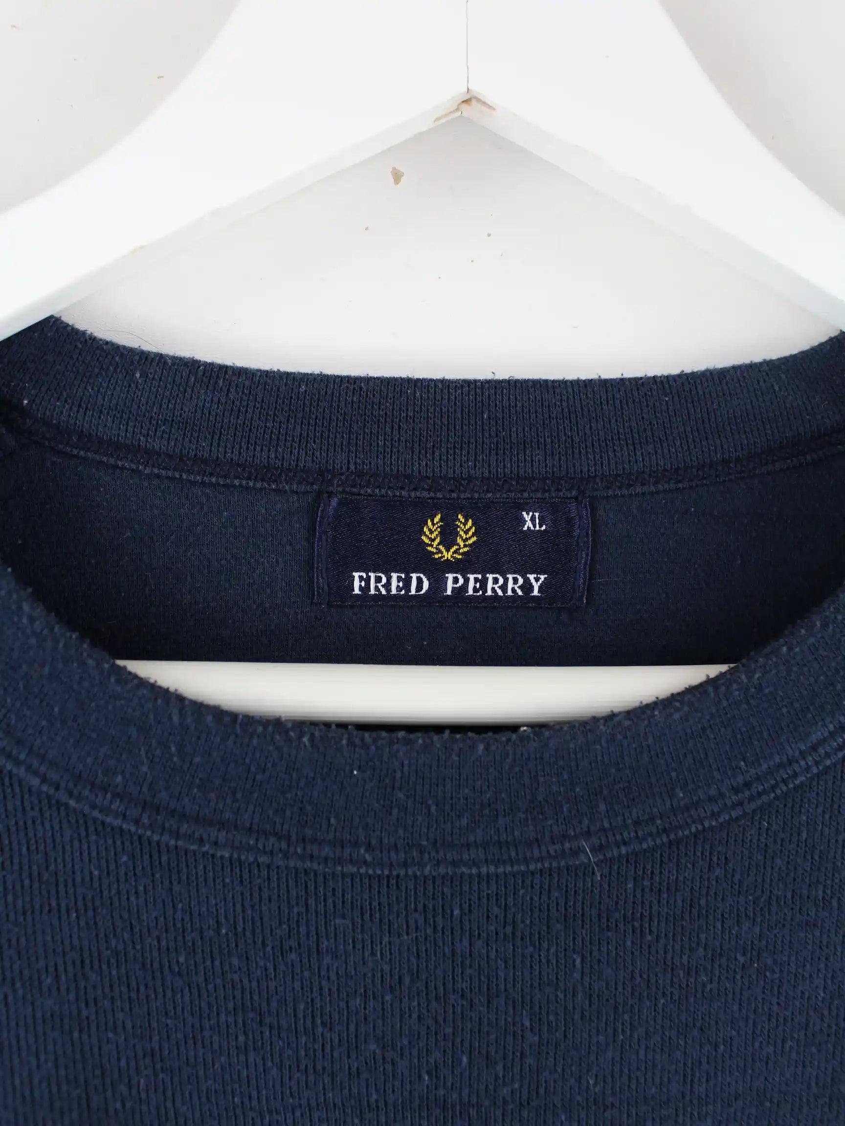 Blauer Sweater der Brand Fred Perry in Größe XL. Er ist aus einer Baumwollmischung gemacht und in sehr gutem Zustand lieferbar.