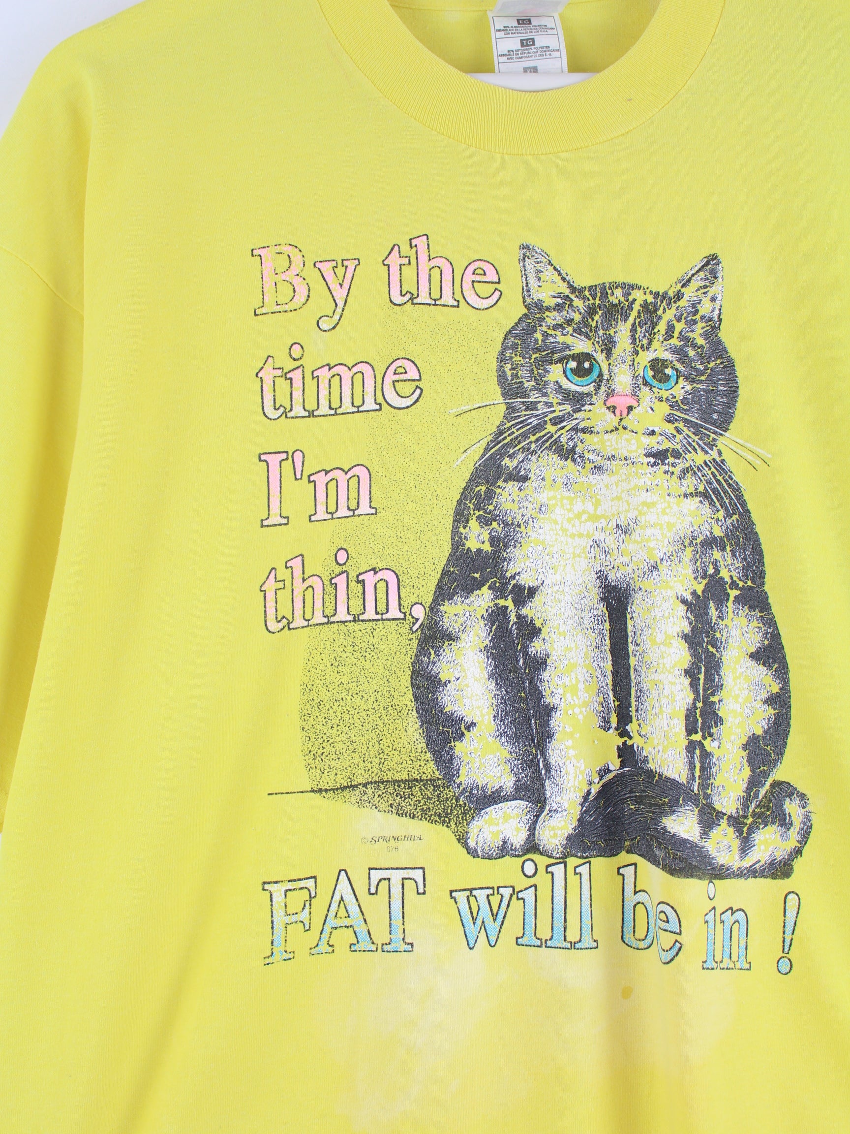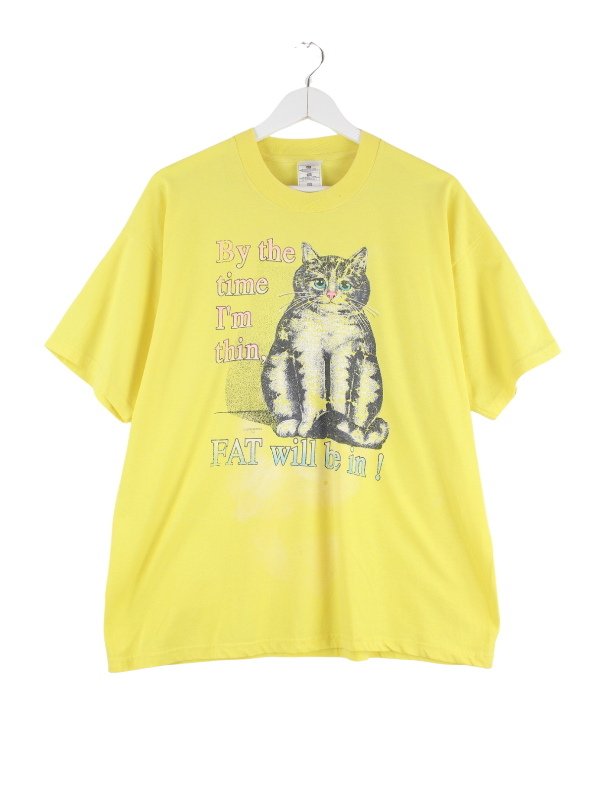 Fruit of the Loom 80s Vintage Cat Print Single Stitch T-Shirt Gelb XL