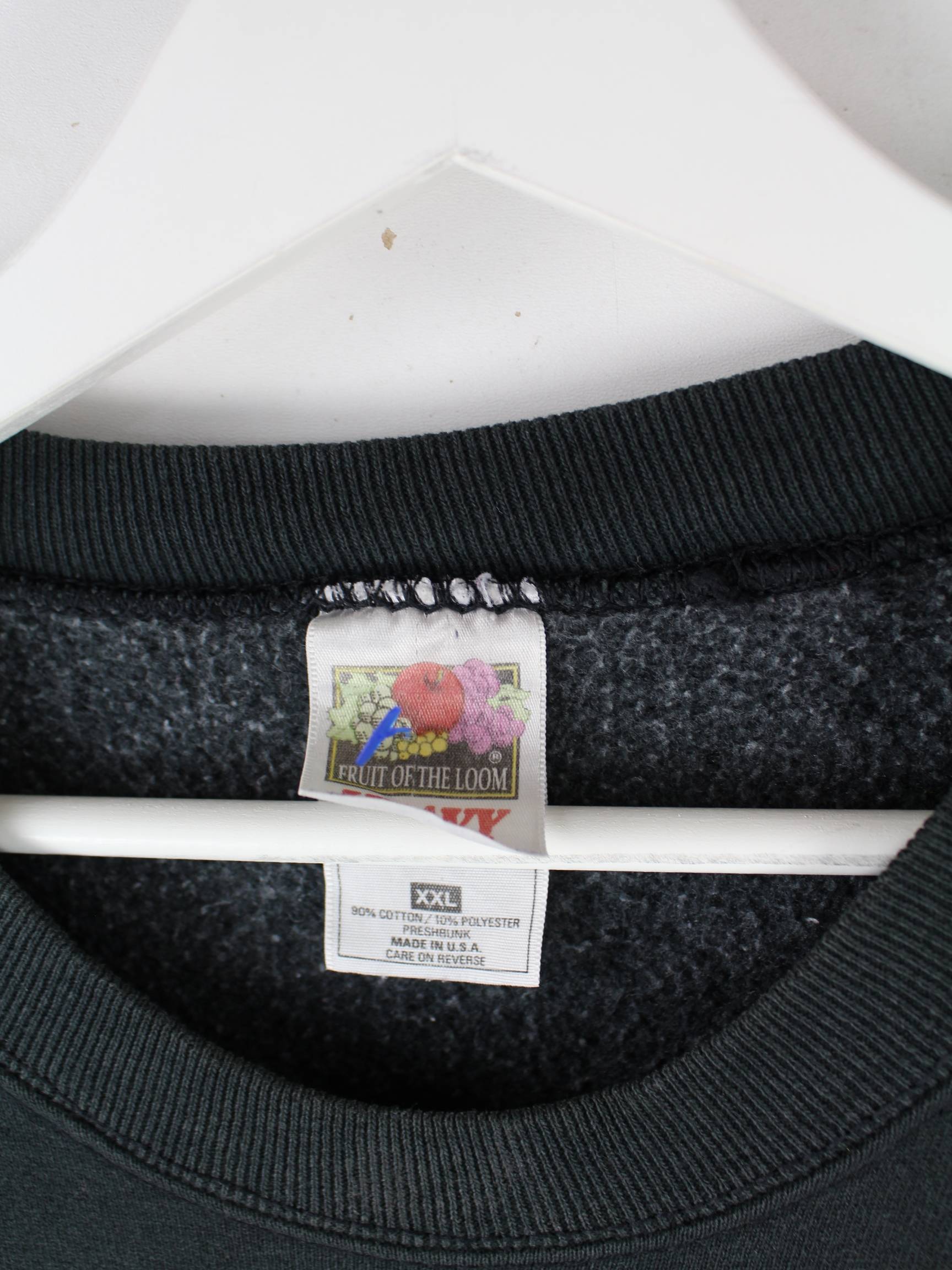 Schwarzer Sweater mit gestickten Motiven von Fruit of the Loom aus den 90'ern in Größe XXL. Er ist aus einer Baumwollmischung und in gutem Zustand im Bestand.
