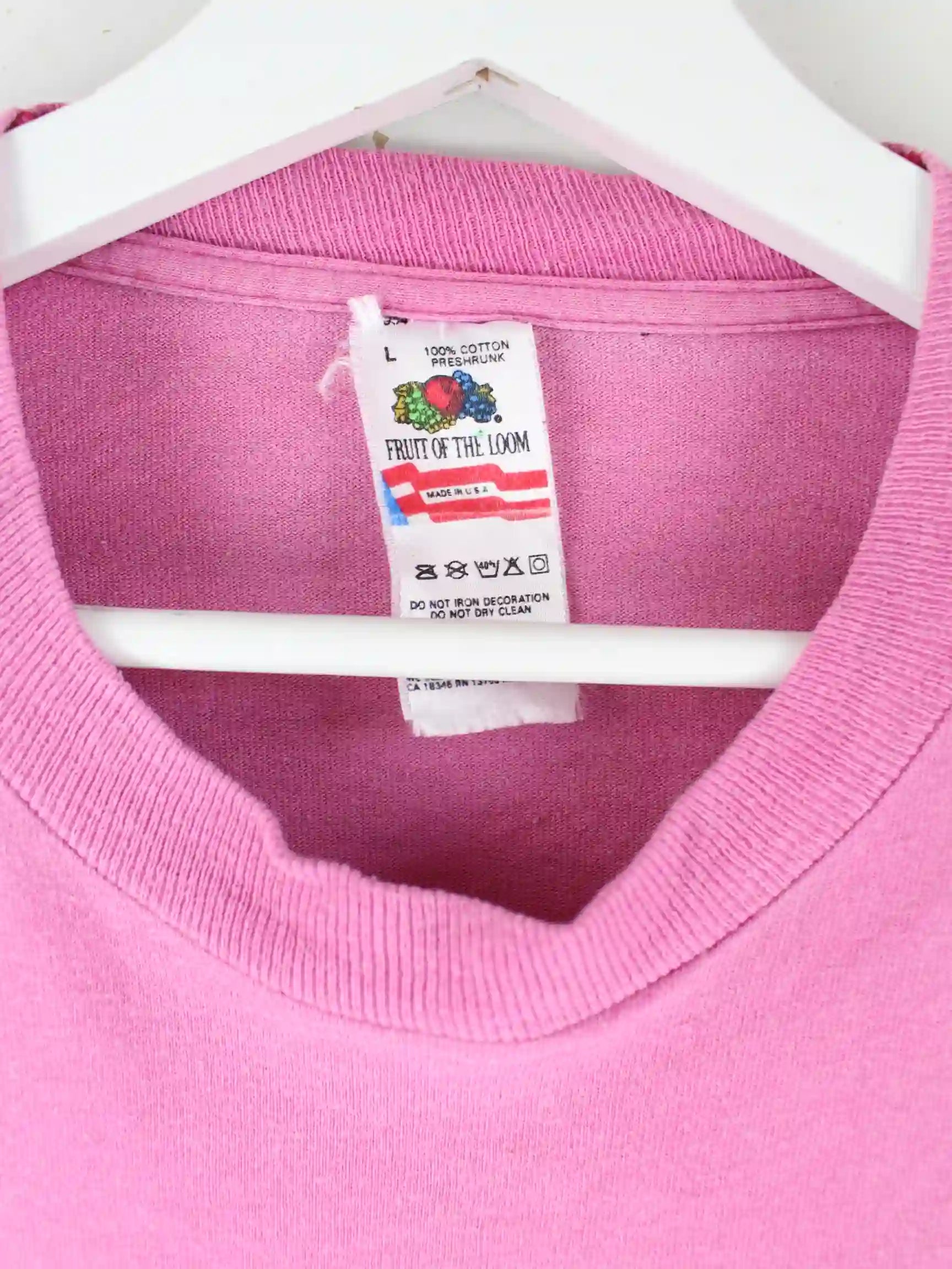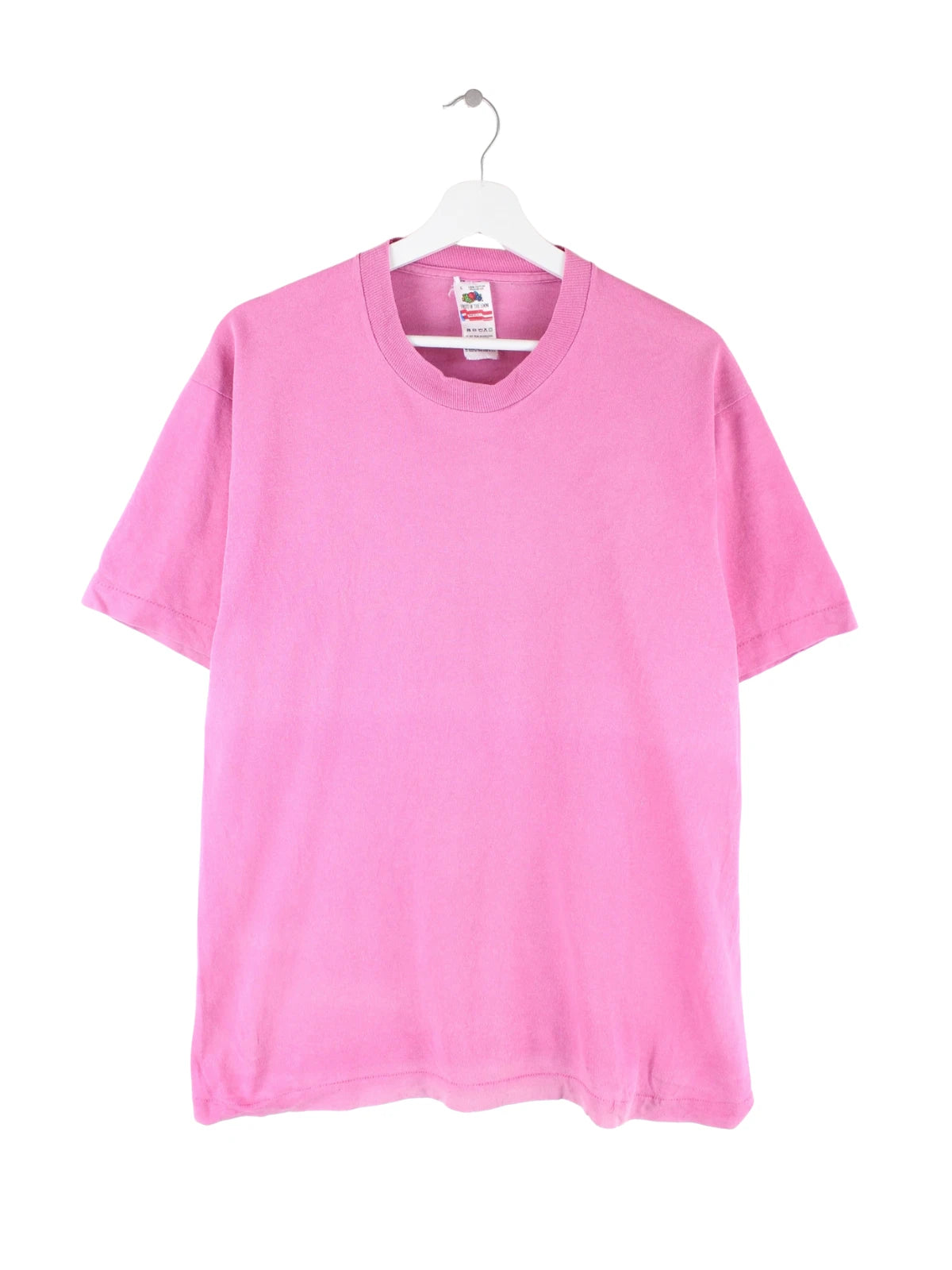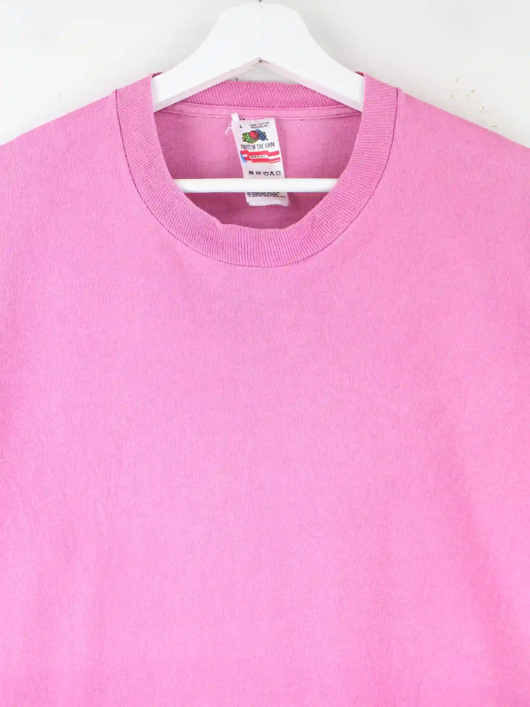 T-Shirt des Labels Fruit of the Loom in Größe L aus den 90'ern. Es ist aus Baumwolle angefertigt und in Rosa im Bestand.