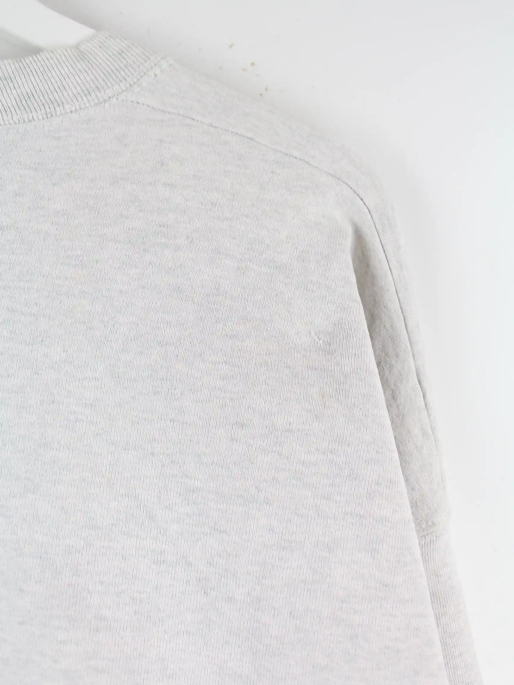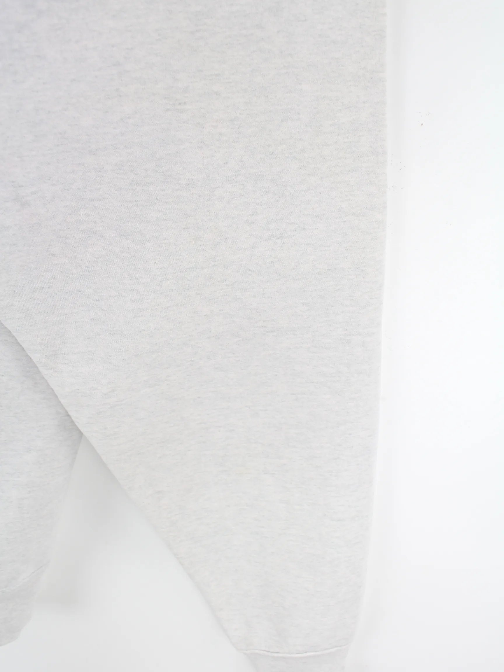 Sweater vom Label Fruit of the Loom in Größe XXL aus den 90'ern. Er ist aus einer Baumwollmischung angefertigt und in Grau zu haben.