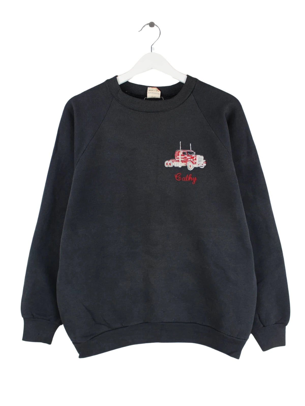 Fruit of the Loom 90s Vintage Truck Embroidered Sweater Schwarz L