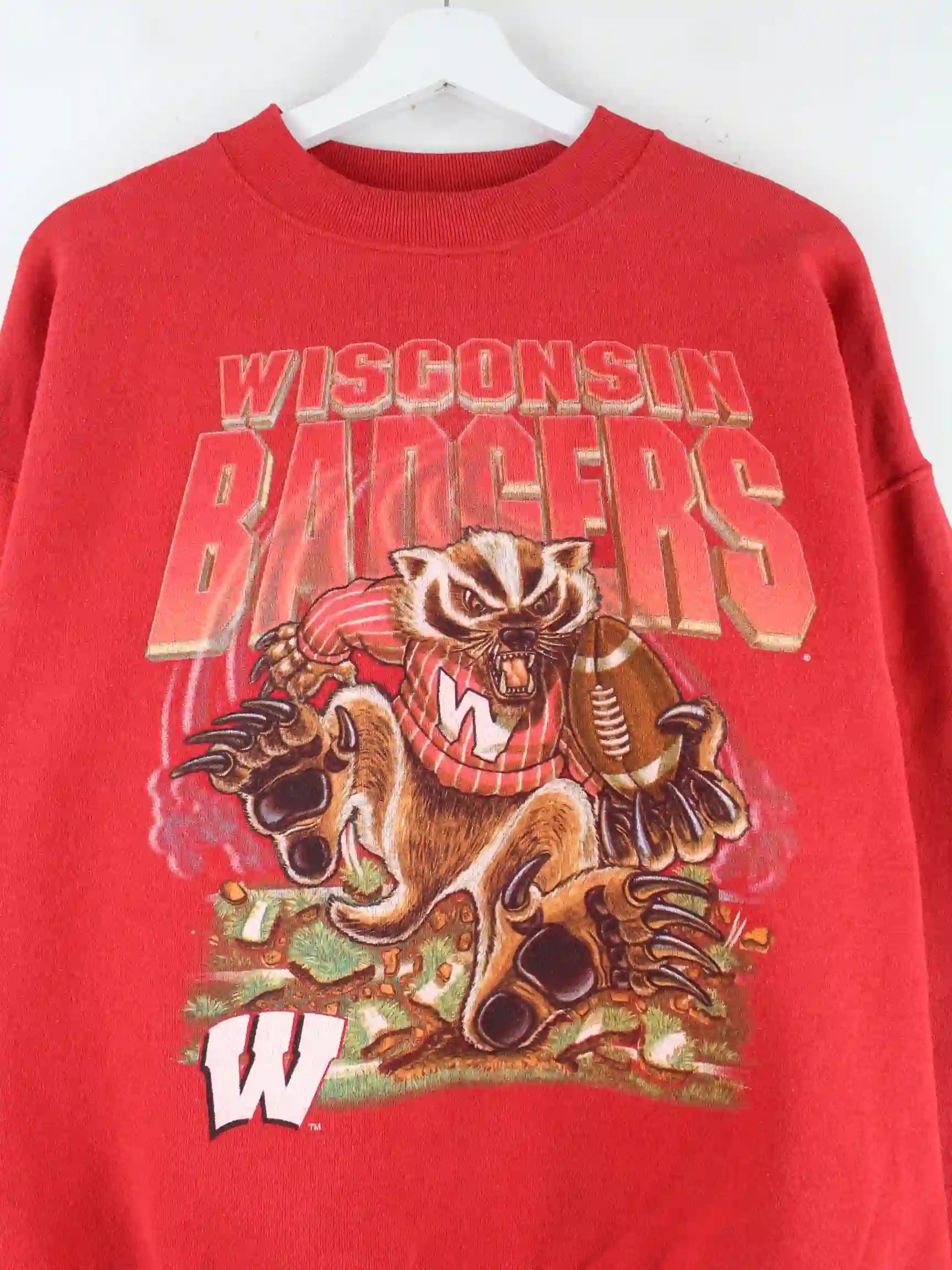 Fruit of the Loom 90s Vintage Wisconsin Badgers Print Sweater Rot L
