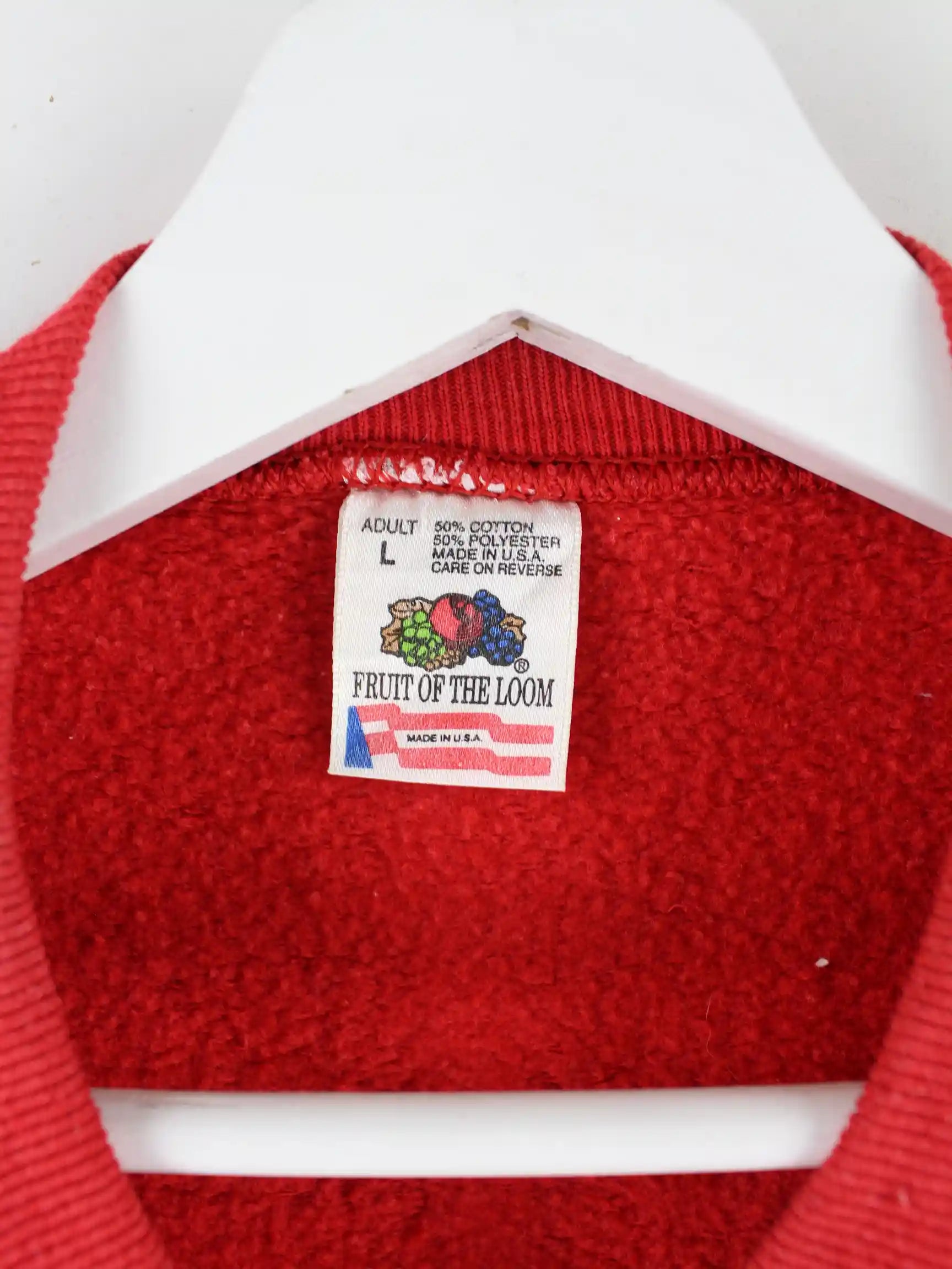 Sweater von Fruit of the Loom in Größe L aus den 90'ern. Er ist aus einer Baumwollmischung produziert und in Rot im Bestand. Mit schickem Badgers Print.