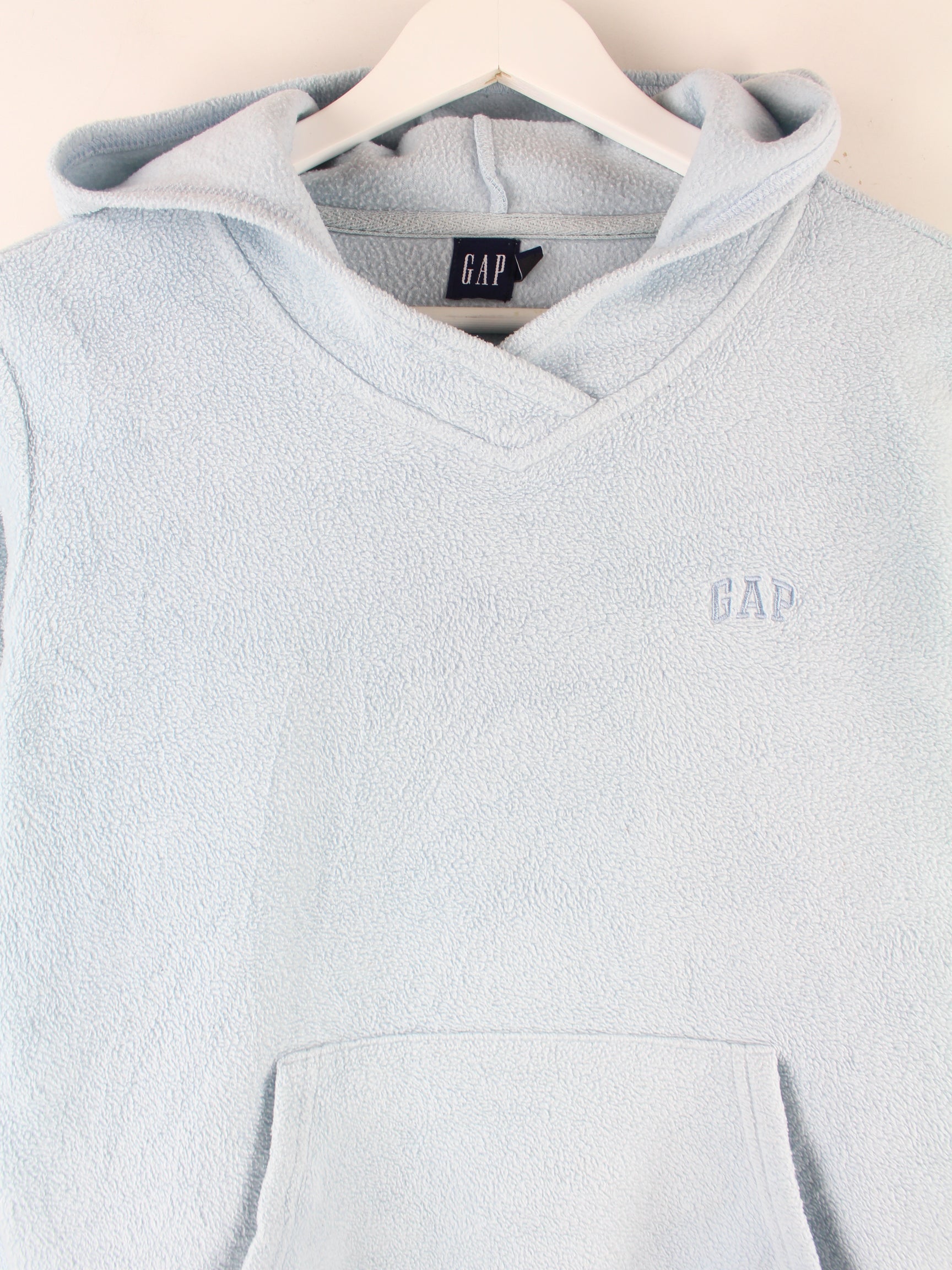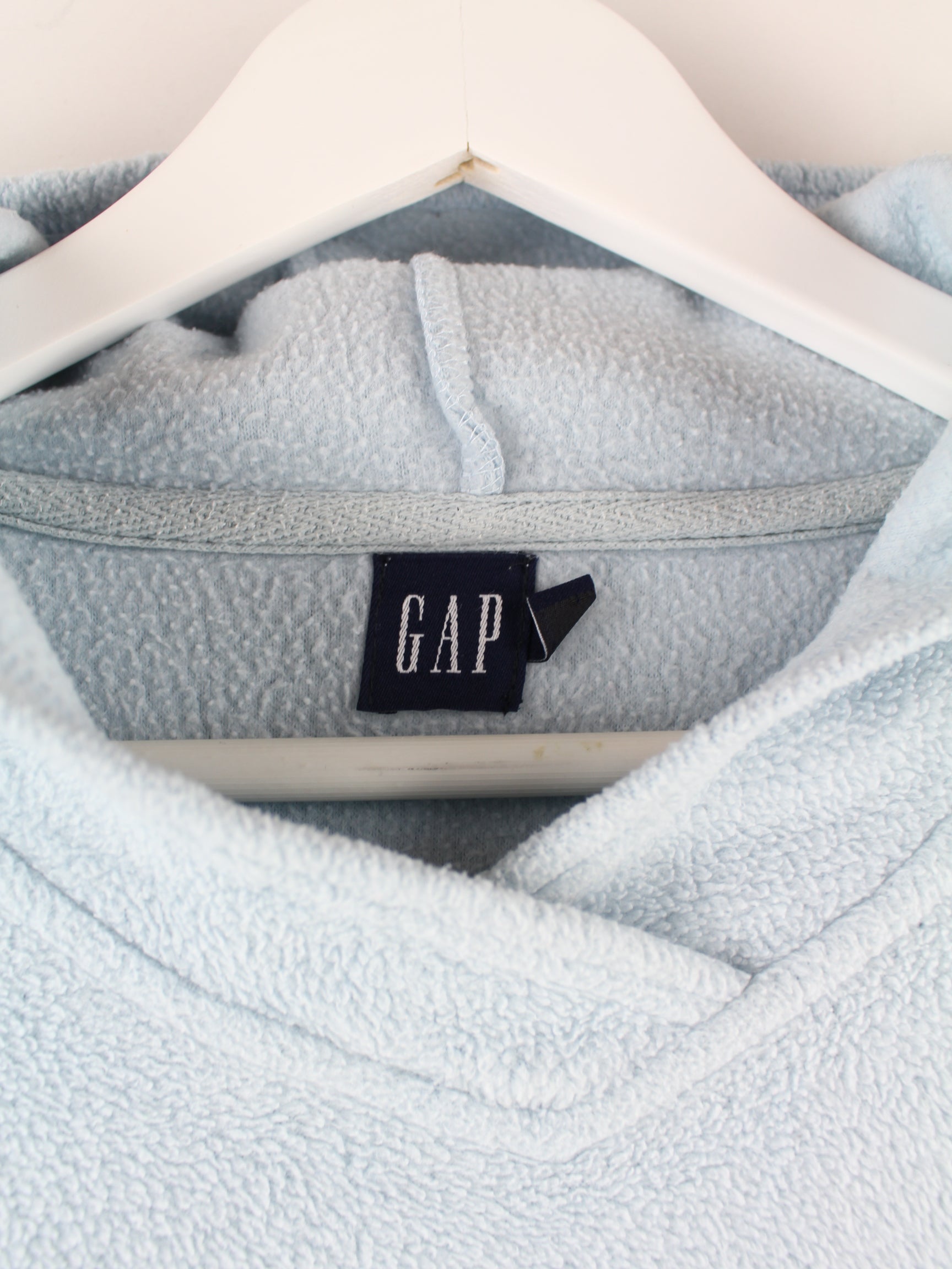 Blauer Hoodie der Marke GAP in Größe M. Er ist aus angenehmem Fleece hergestellt und in gutem Zustand bei uns zu bekommen.