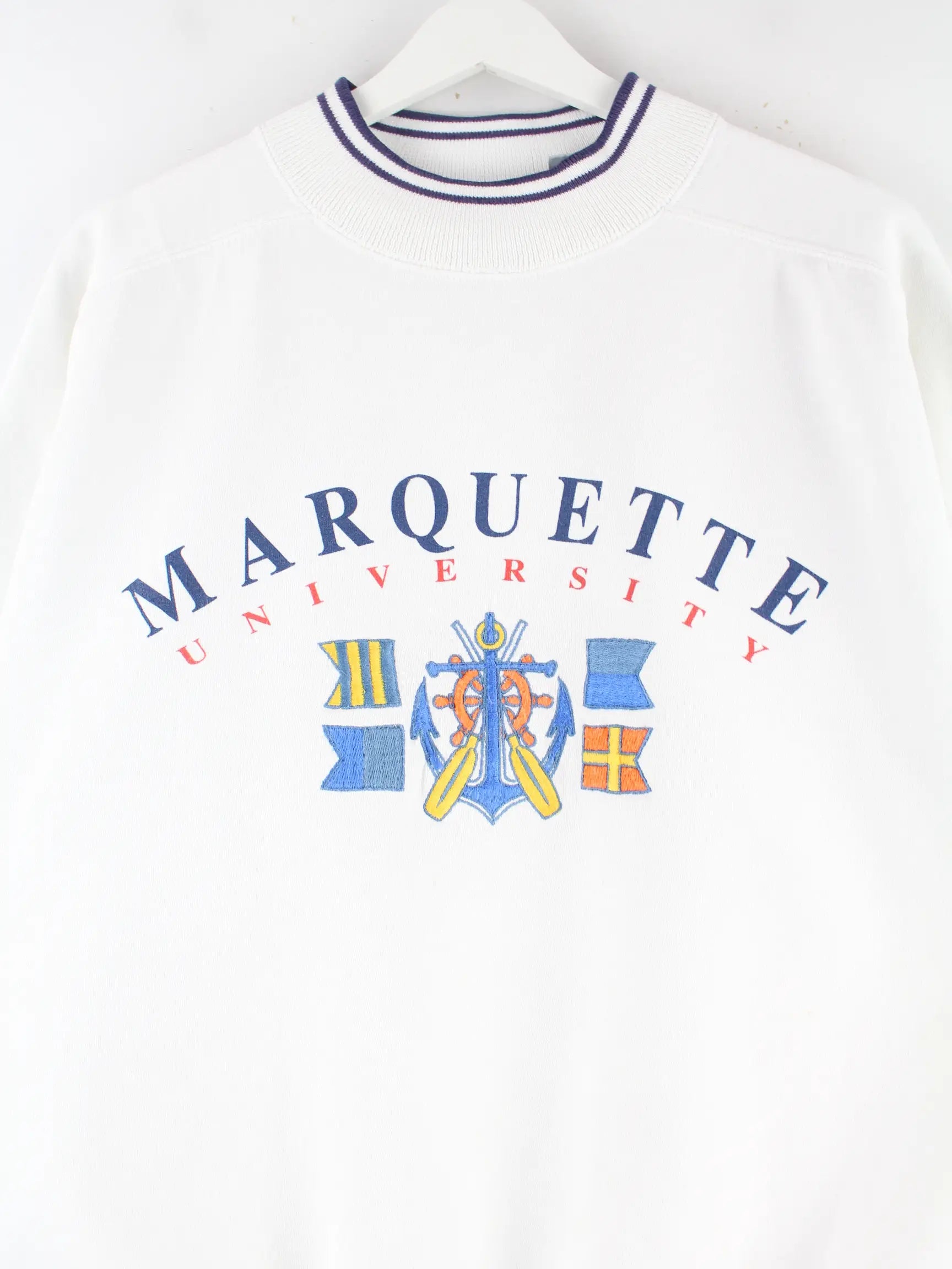 Weißer Sweater aus dem Hause Gear for Sports in Größe M. Er ist aus einer Baumwollmischung gemacht und in sehr gutem Zustand lieferbar. Mit schickem Marquette Print.