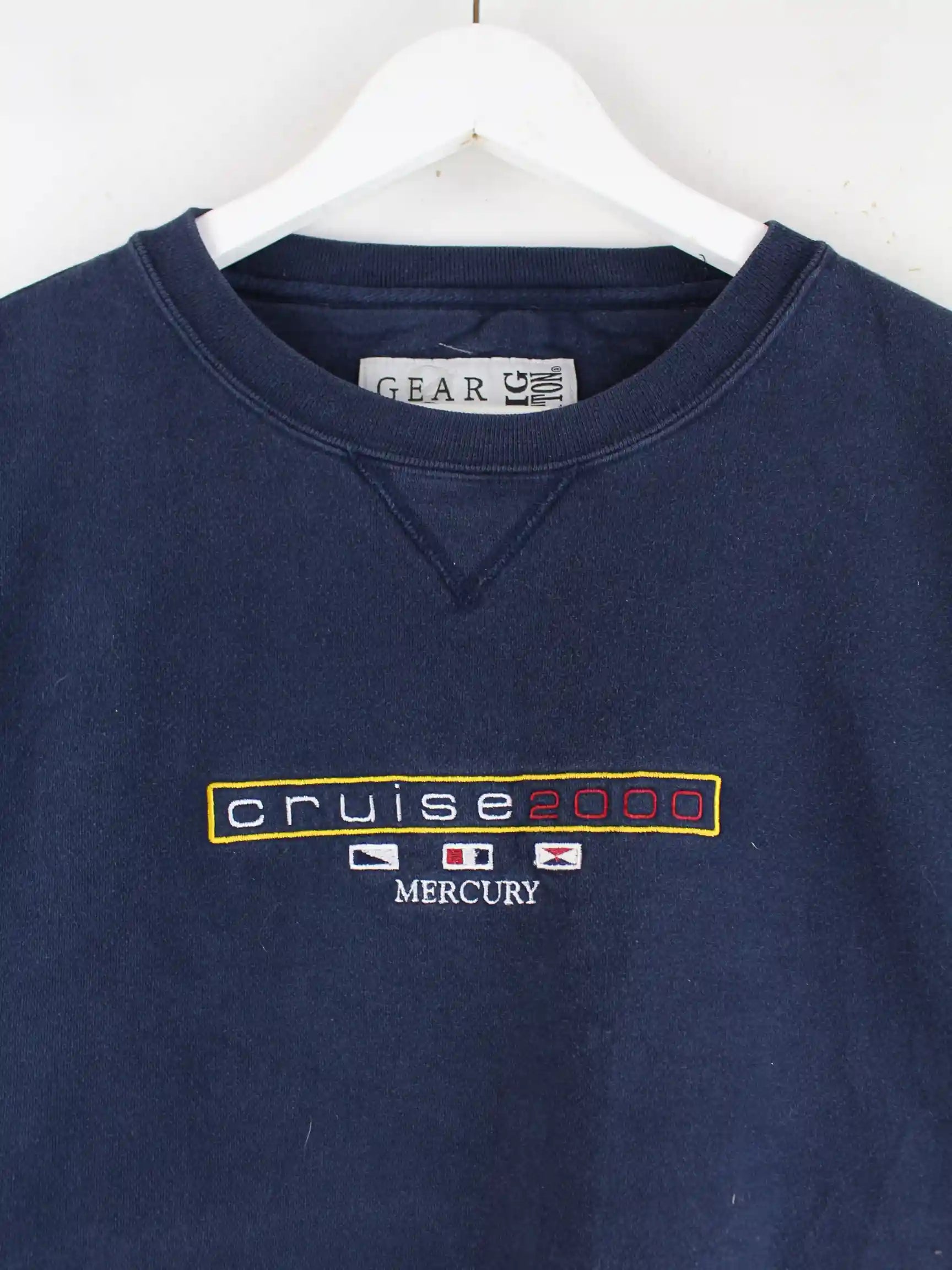 Blauer Sweater mit gesticktem Logo des Labels Gear for Sports aus den 90'ern in Größe M. Er ist aus einer Baumwollmischung angefertigt und in gutem Zustand auf Lager.
