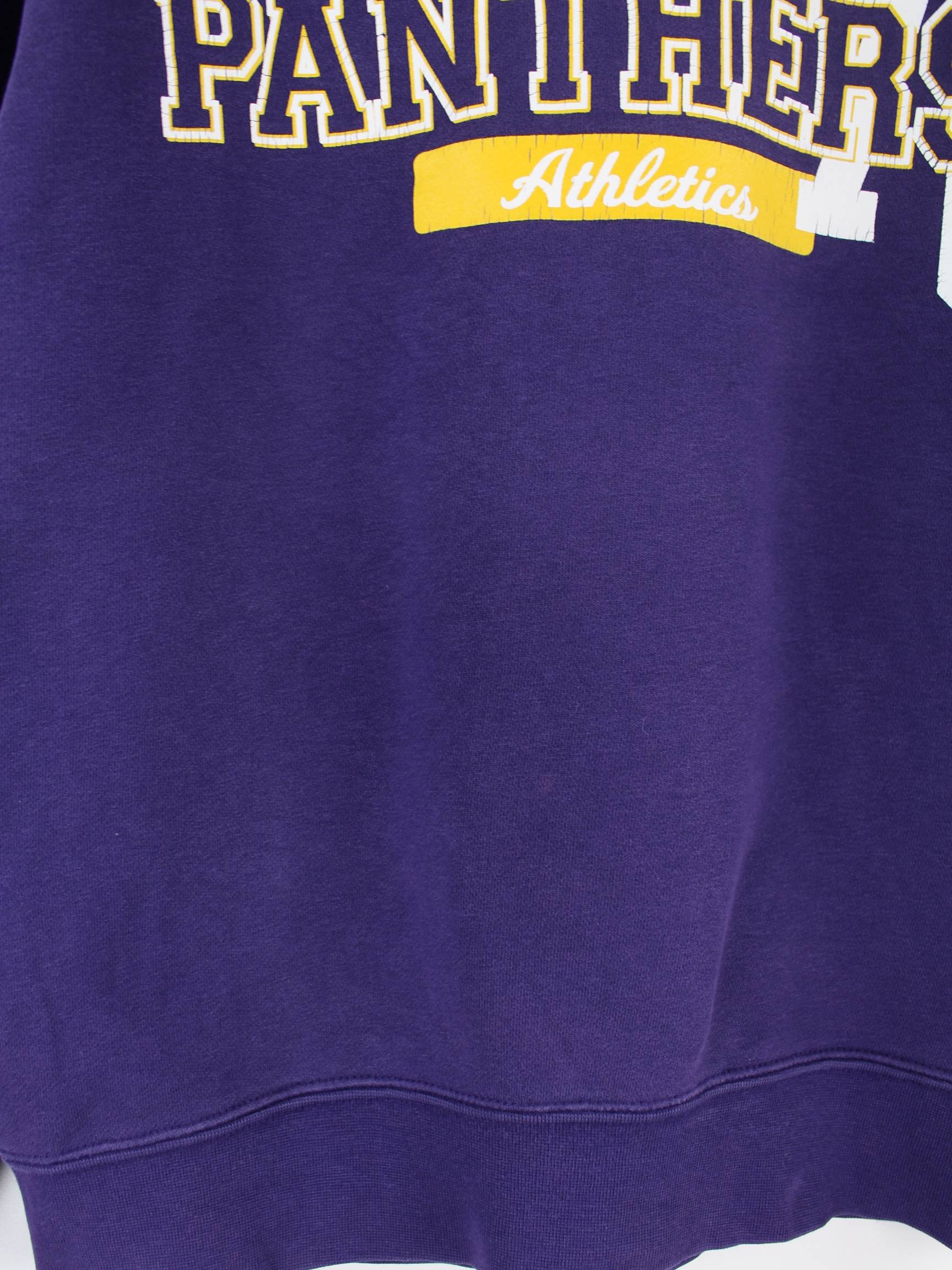 Lilafarbener Sweater des Labels Gear for Sports aus den 90'ern in Größe S. Er ist aus einer Baumwollmischung und in gutem Zustand im Angebot. Mit tollem Panthers Print.