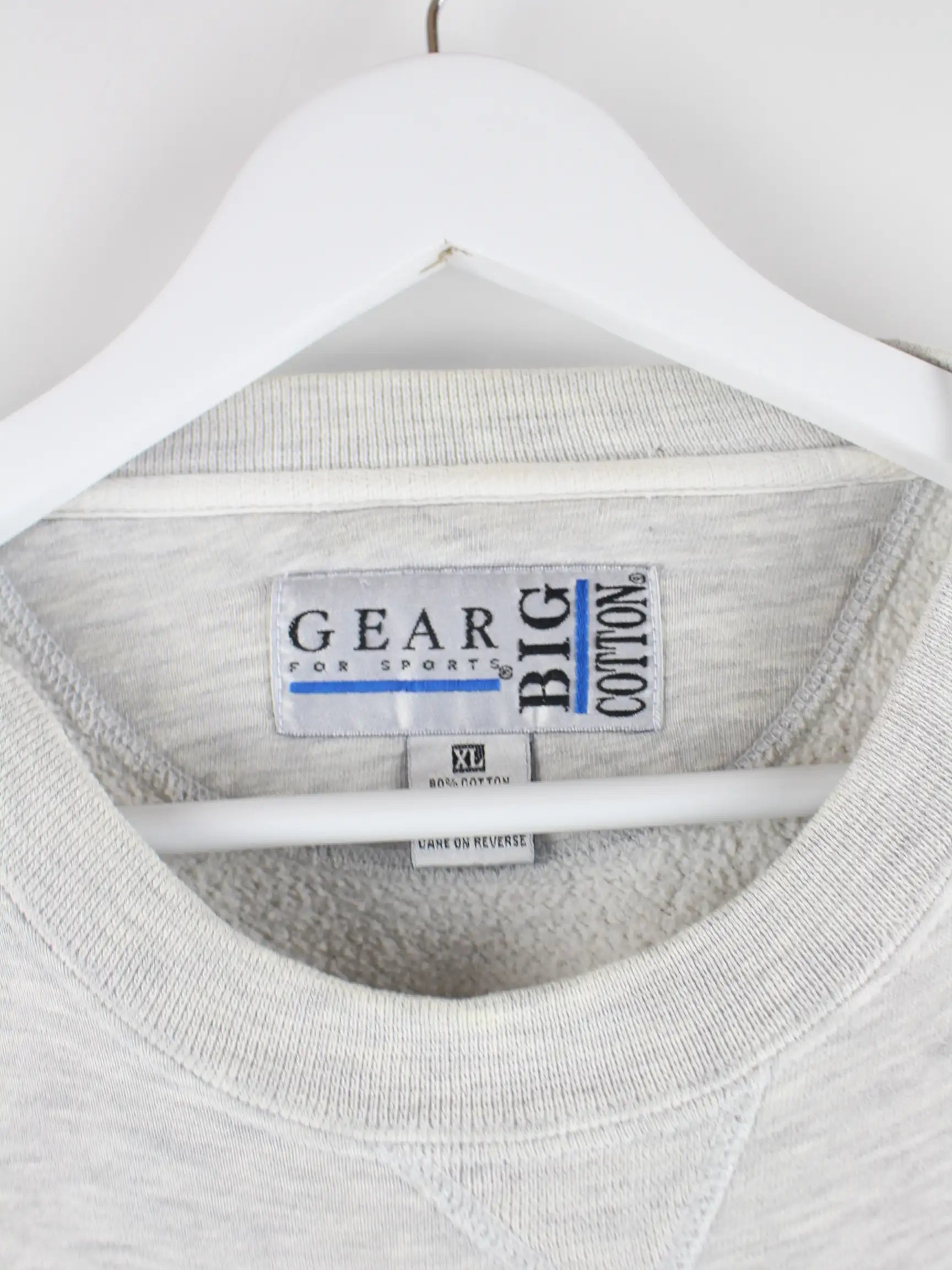 Sweater vom Label Gear for Sports in Größe XL aus den 90'ern. Er ist aus einer Baumwollmischung und in Grau im Bestand. Mit schickem Winfrey Print.