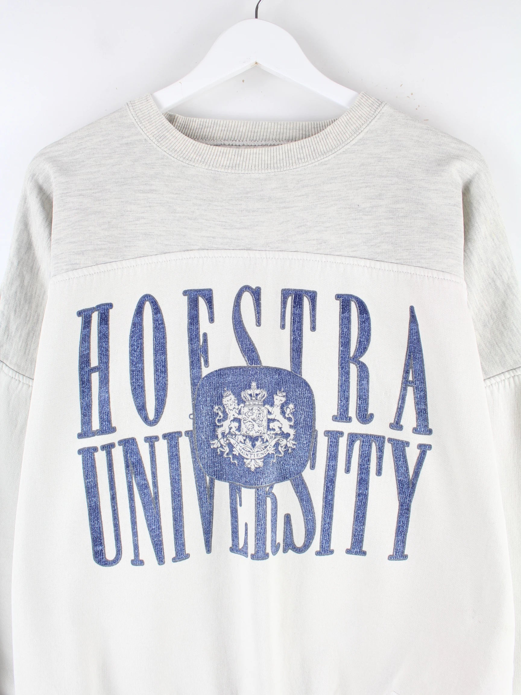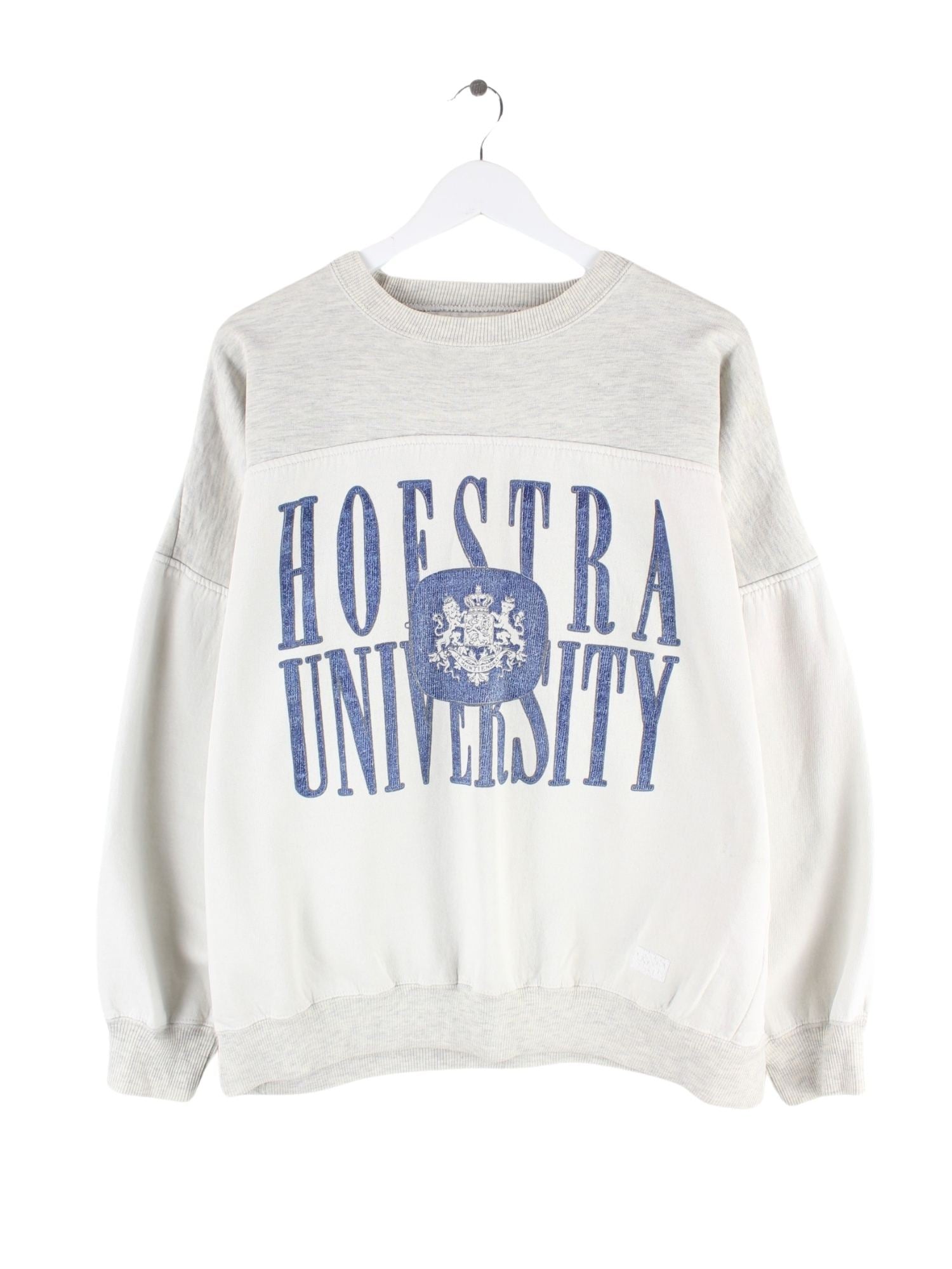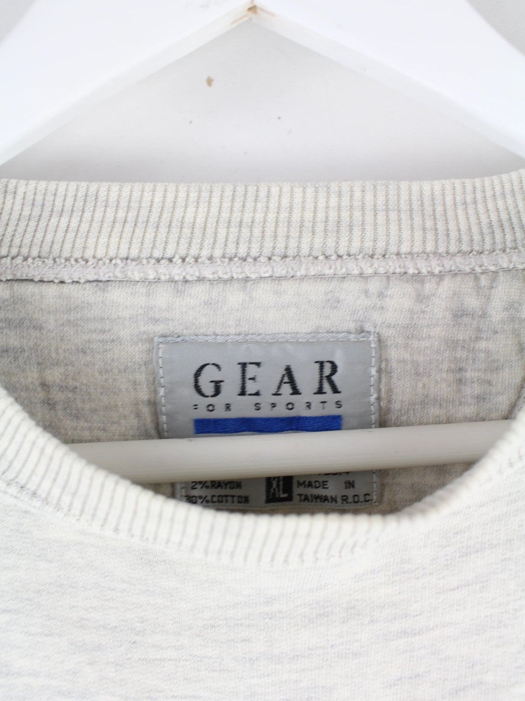 Sweater vom Label Gear for Sports in Größe XL aus den 90'ern. Er ist aus einer Baumwollmischung angefertigt und in Grau zu haben. Mit schickem University Print.