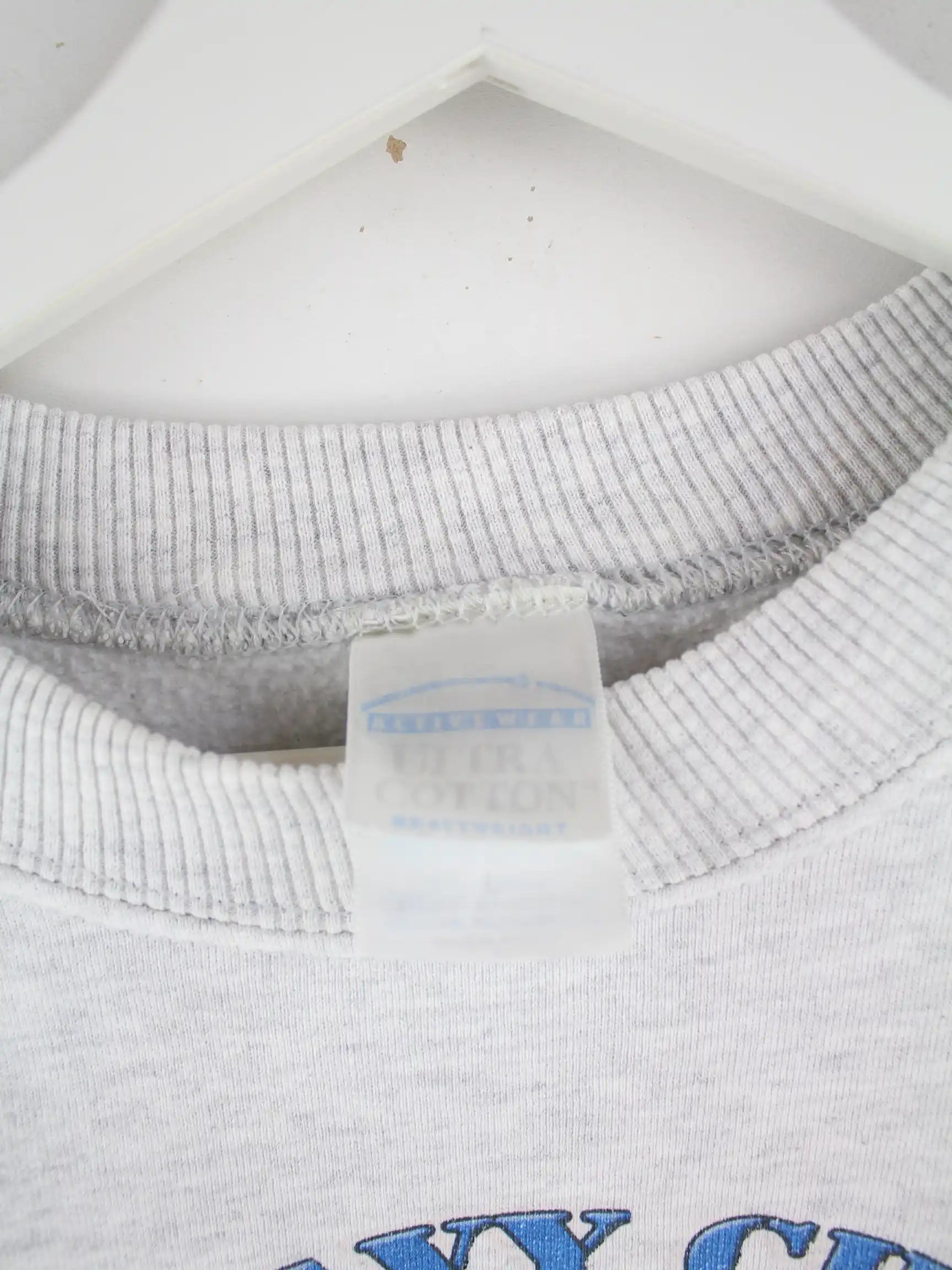 Sweater von Gildan in Größe L. Er ist aus einer Baumwollmischung gemacht und in Grau vorrätig. Mit chiquem Chiefs Print.