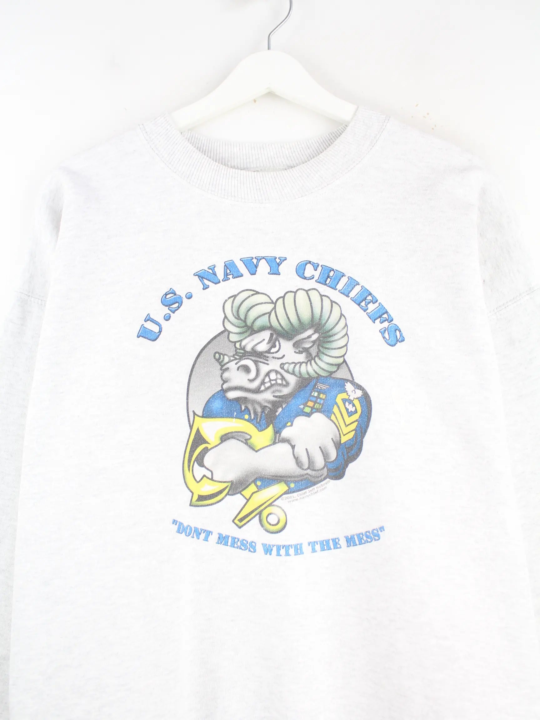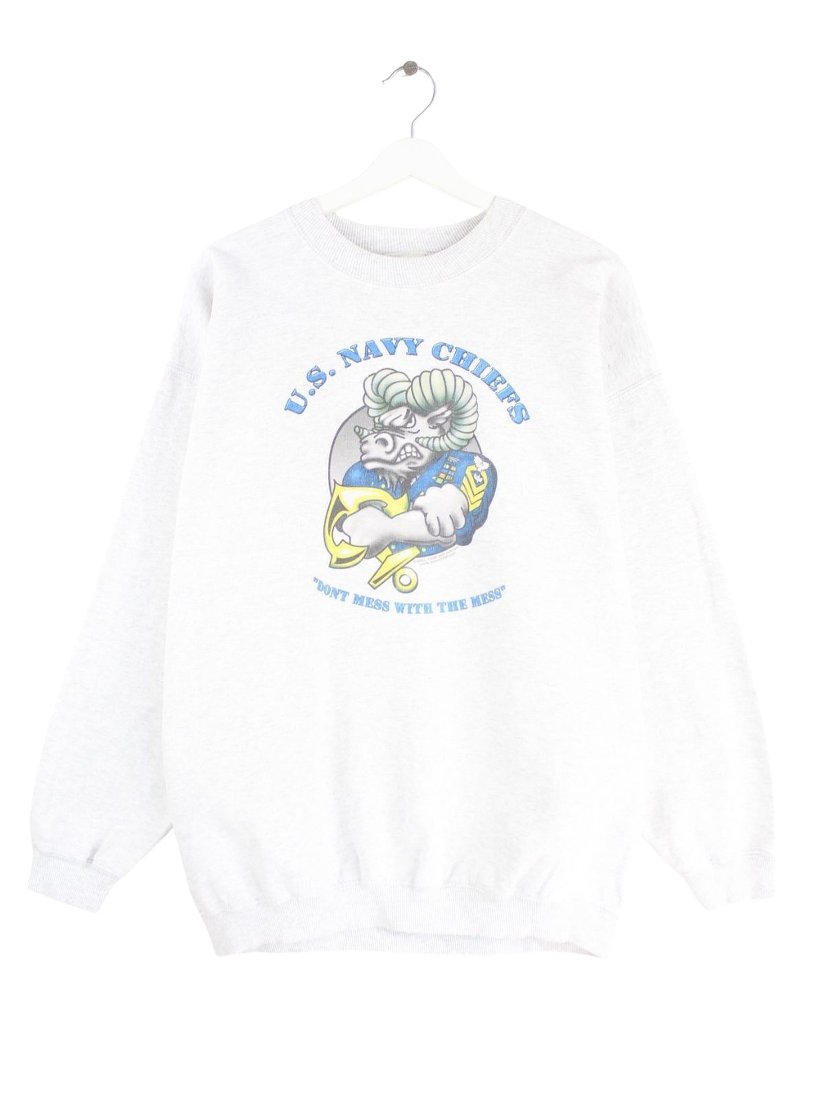 Gildan 2001 US Navy Chiefs Print Sweater Grau L