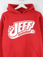Hoodie vom Label Gildan in Größe M. Er ist aus einer Baumwollmischung gemacht und in Rot in Stock. Mit chiquem Basketball Print.