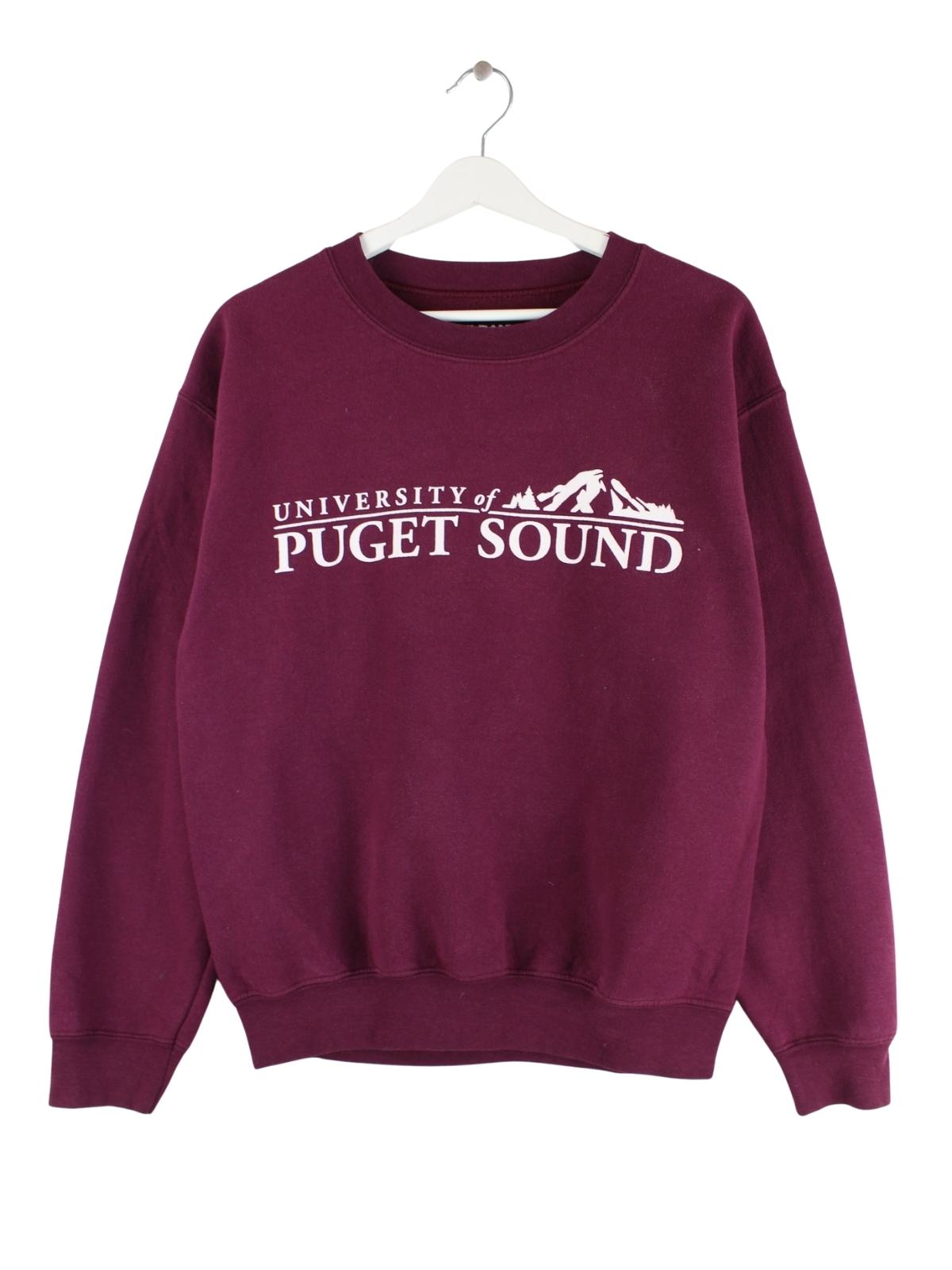 Roter Sweater vom Label Gildan in Größe S. Er ist aus einer Baumwollmischung gemacht und in sehr gutem Zustand vorrätig. Mit tollem University Print.
