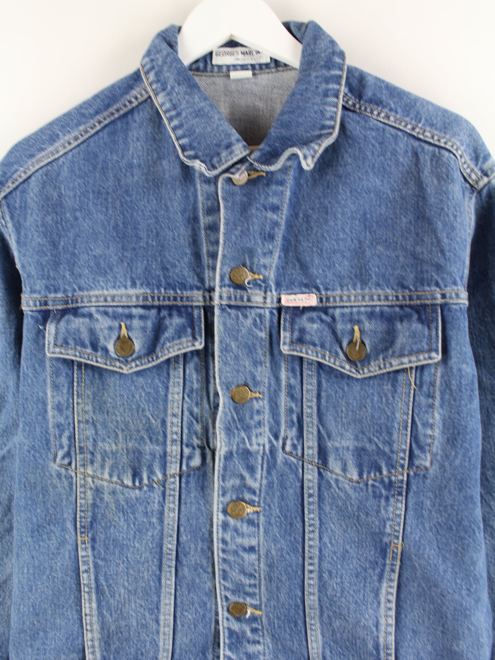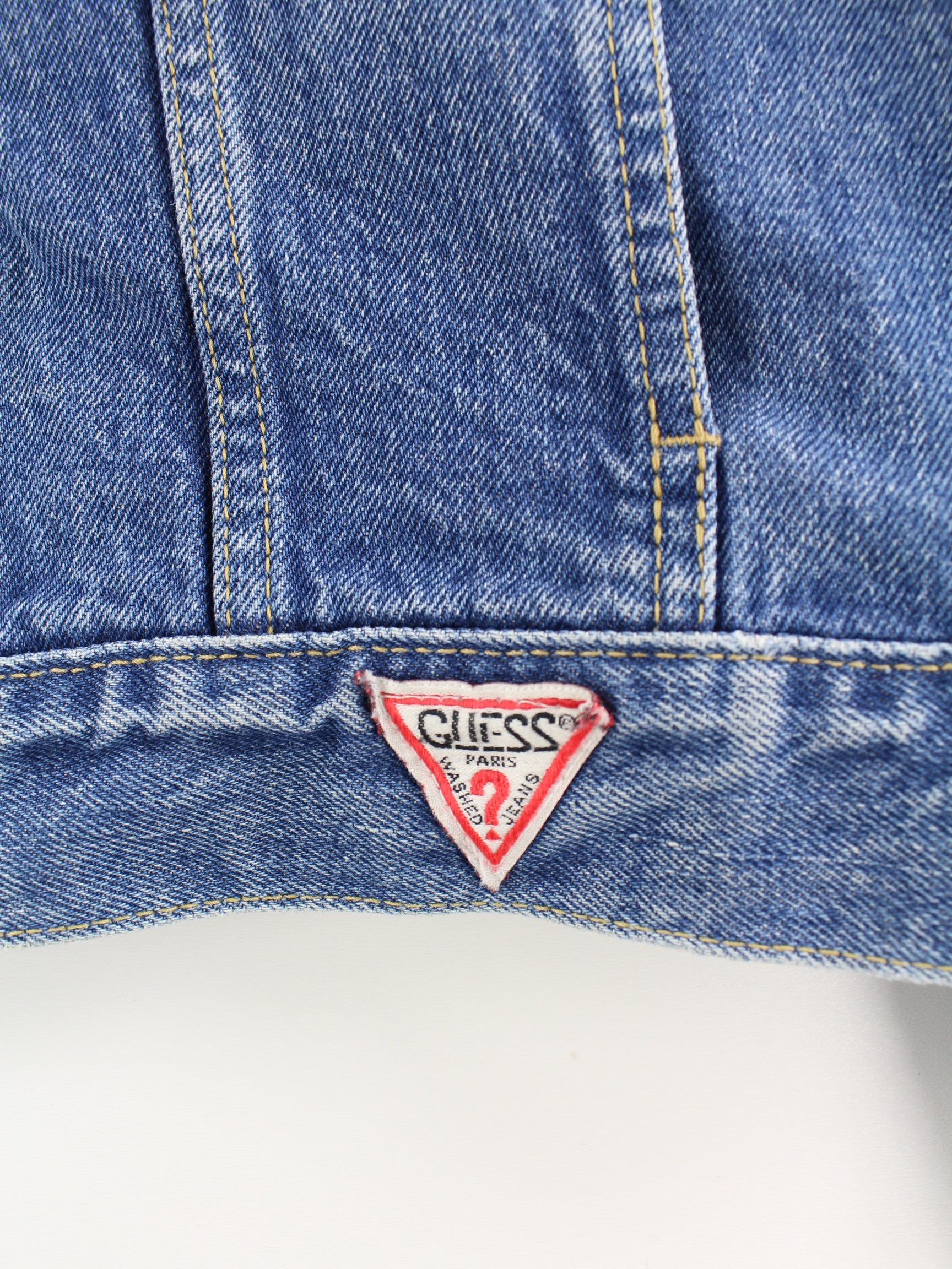 Blaue Vintage Guess Jeans Jacke in Größe L aus den 80er Jahren.