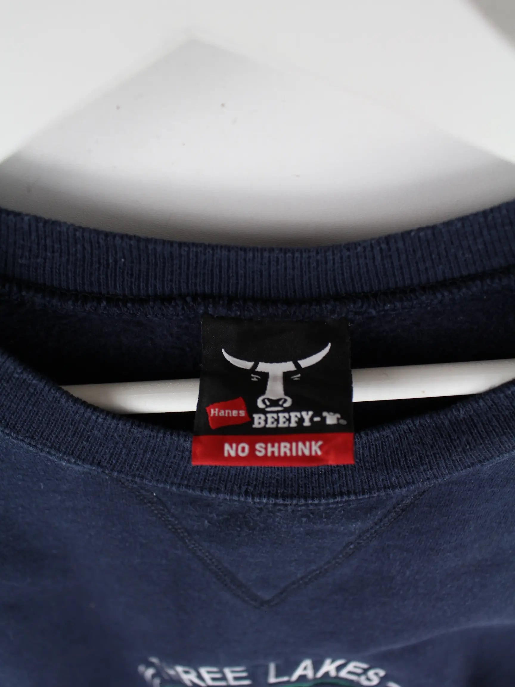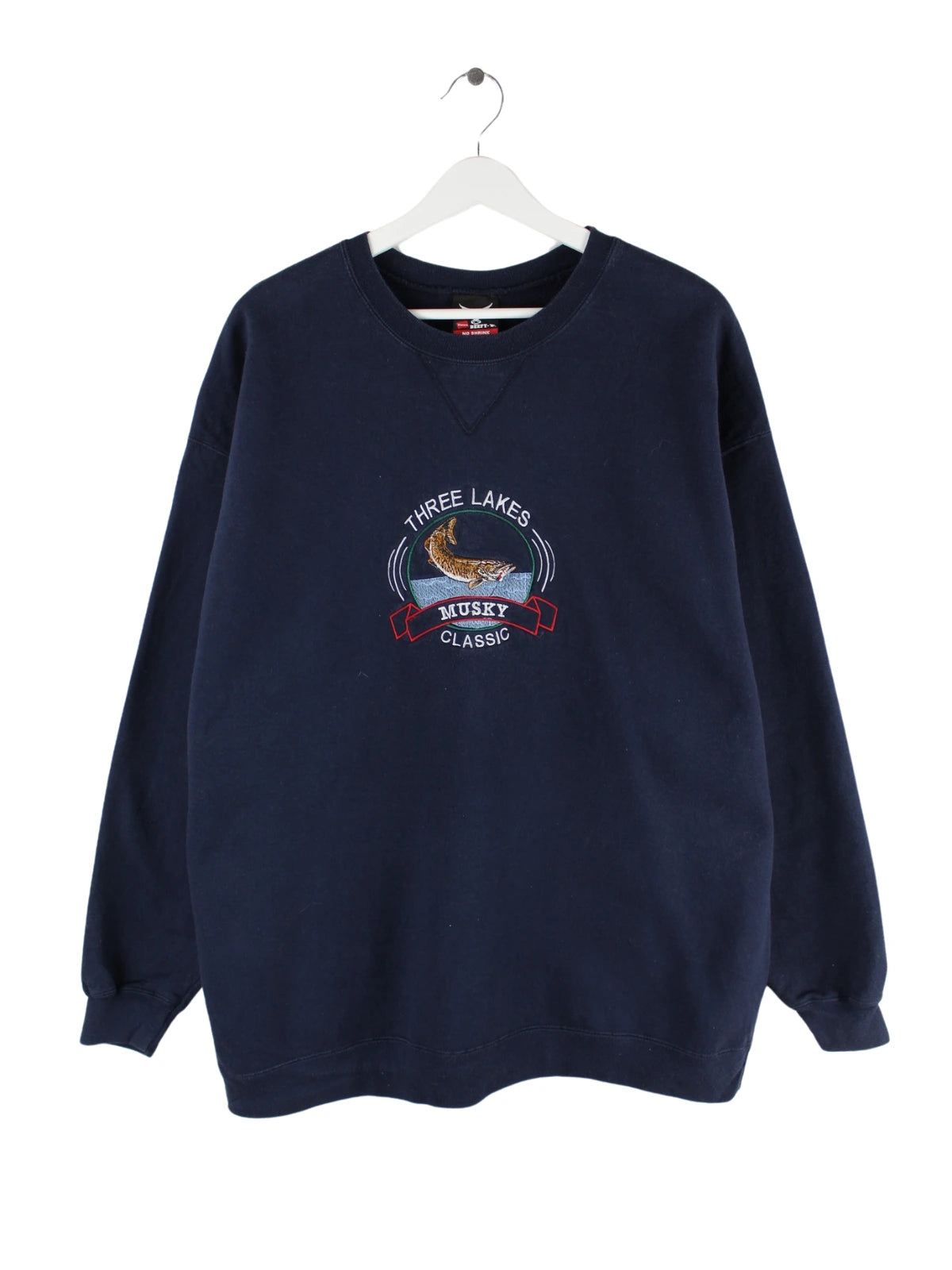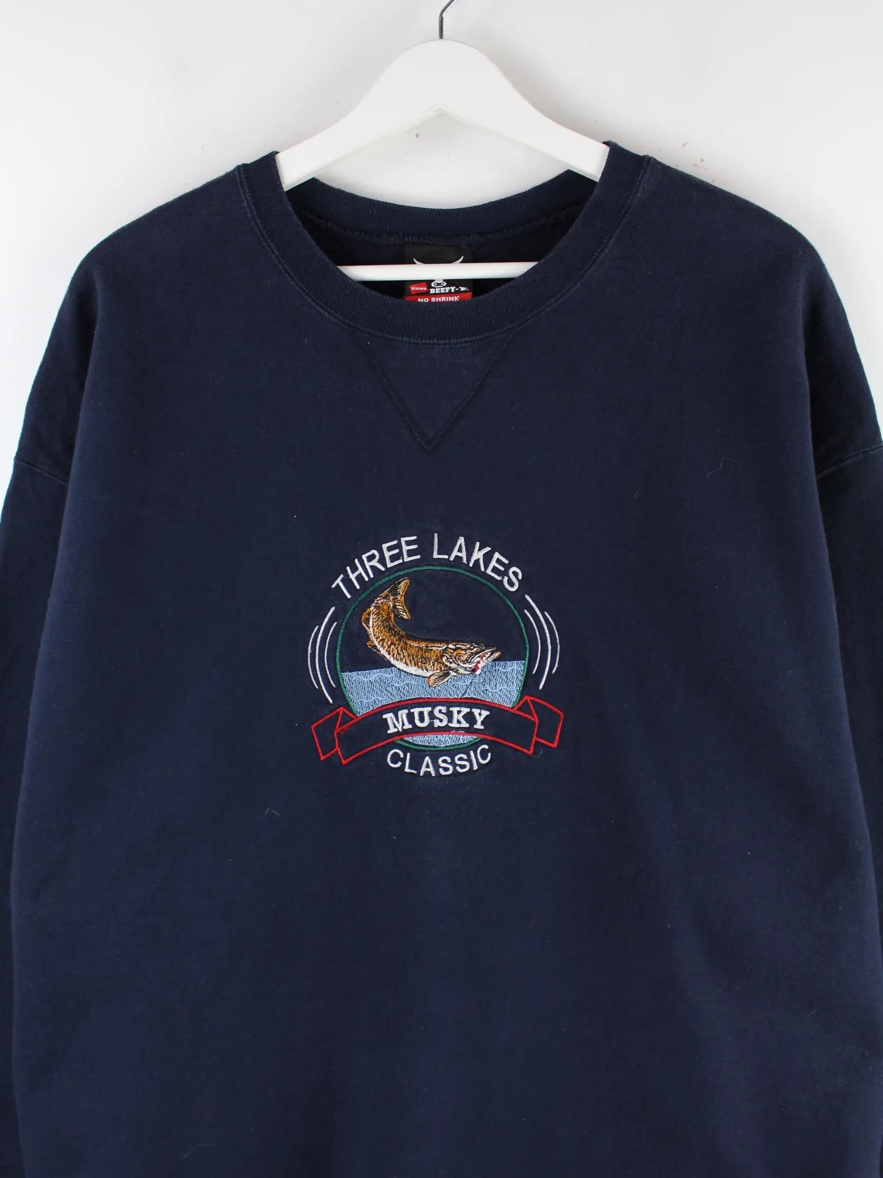 Hanes 00s Beefy-T Fishing Embroidered Oversized Sweater Blau XL