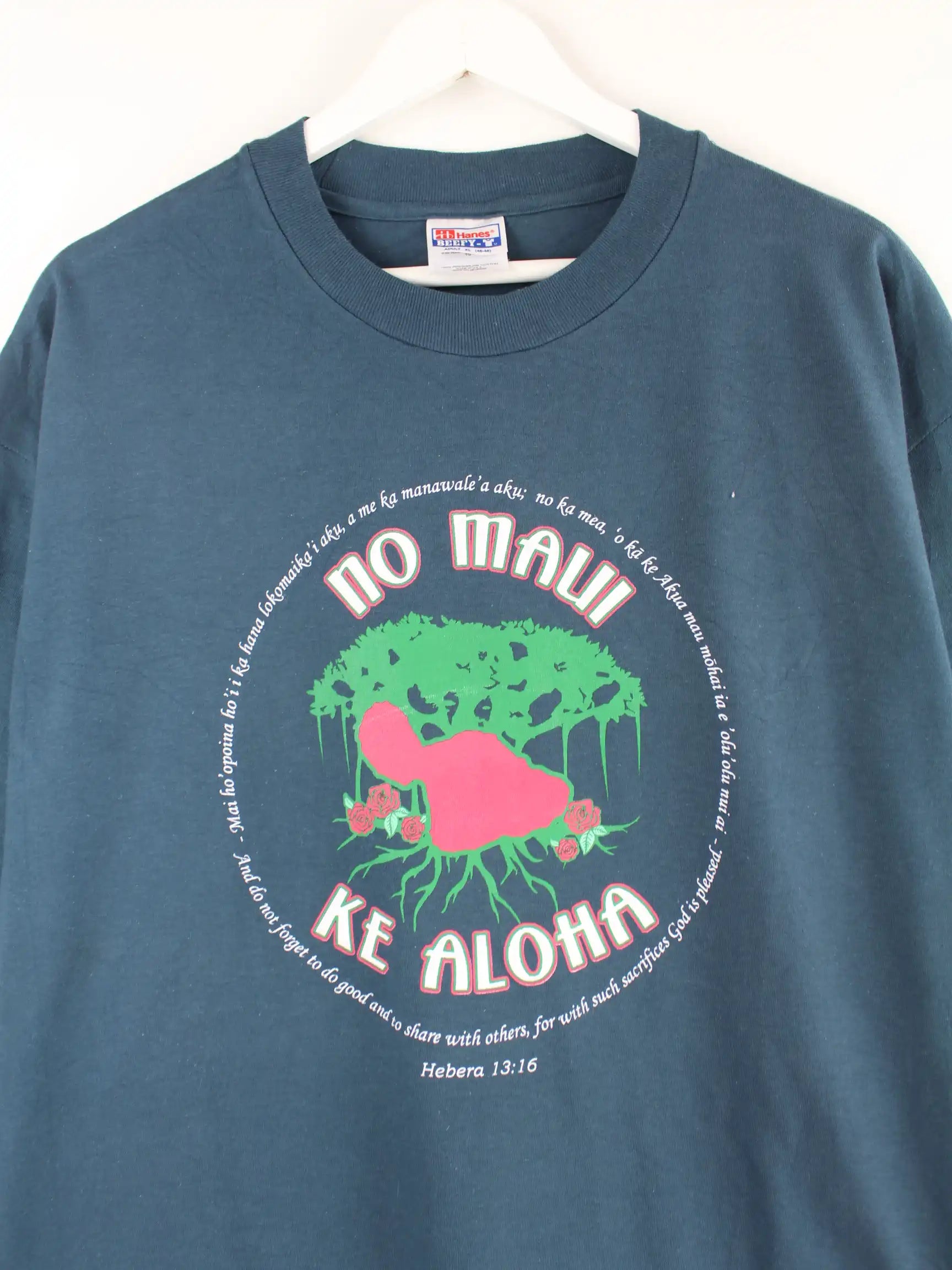T-Shirt von Hanes in Größe XL. Es ist aus Baumwolle gefertigt und in Blau in Stock. Mit seltenem 00s Print.