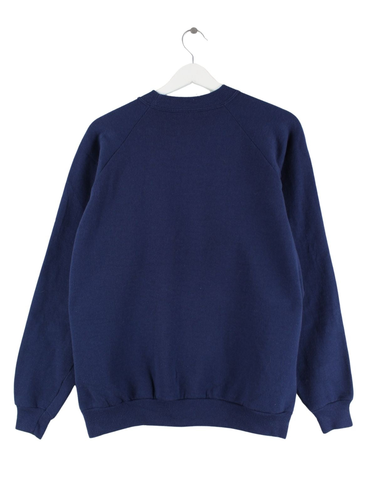 Blauer Sweater mit Stickereien vom Label Hanes in Größe L. Er ist aus einer Baumwollmischung hergestellt und in sehr gutem Zustand auf Lager.