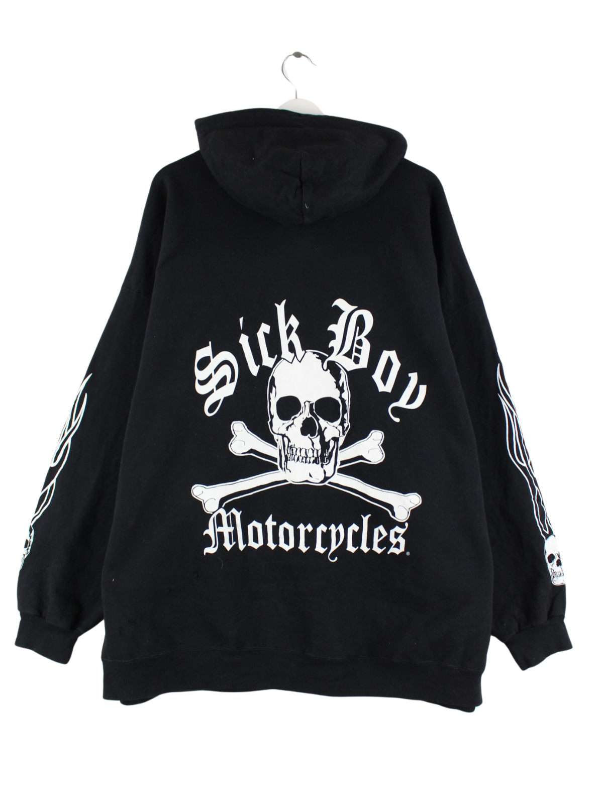 Hanes 90s Vintage Sick Boy Skull Print Zip Hoodie Schwarz XXL