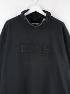Grauer Sweater mit gesticktem Logo vom Label Hugo Boss in Größe L. Er ist aus einer Baumwollmischung produziert und in sehr gutem Zustand bei uns vorrätig.