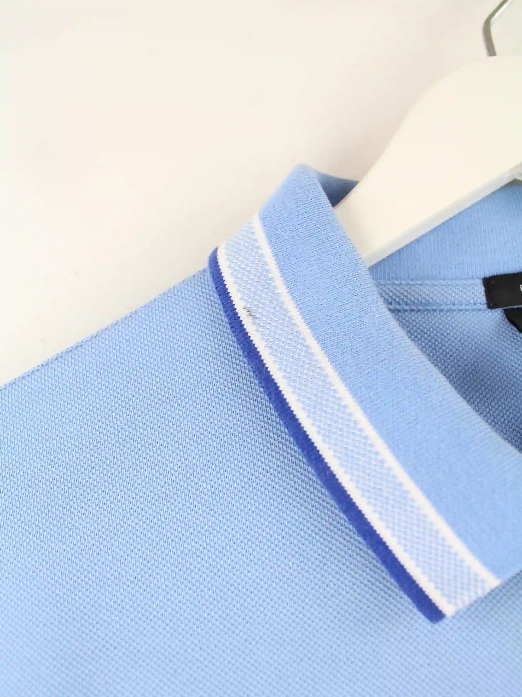 Poloshirt vom Brand Hugo Boss in Größe L. Es ist aus Baumwolle hergestellt und in Blau lieferbar.