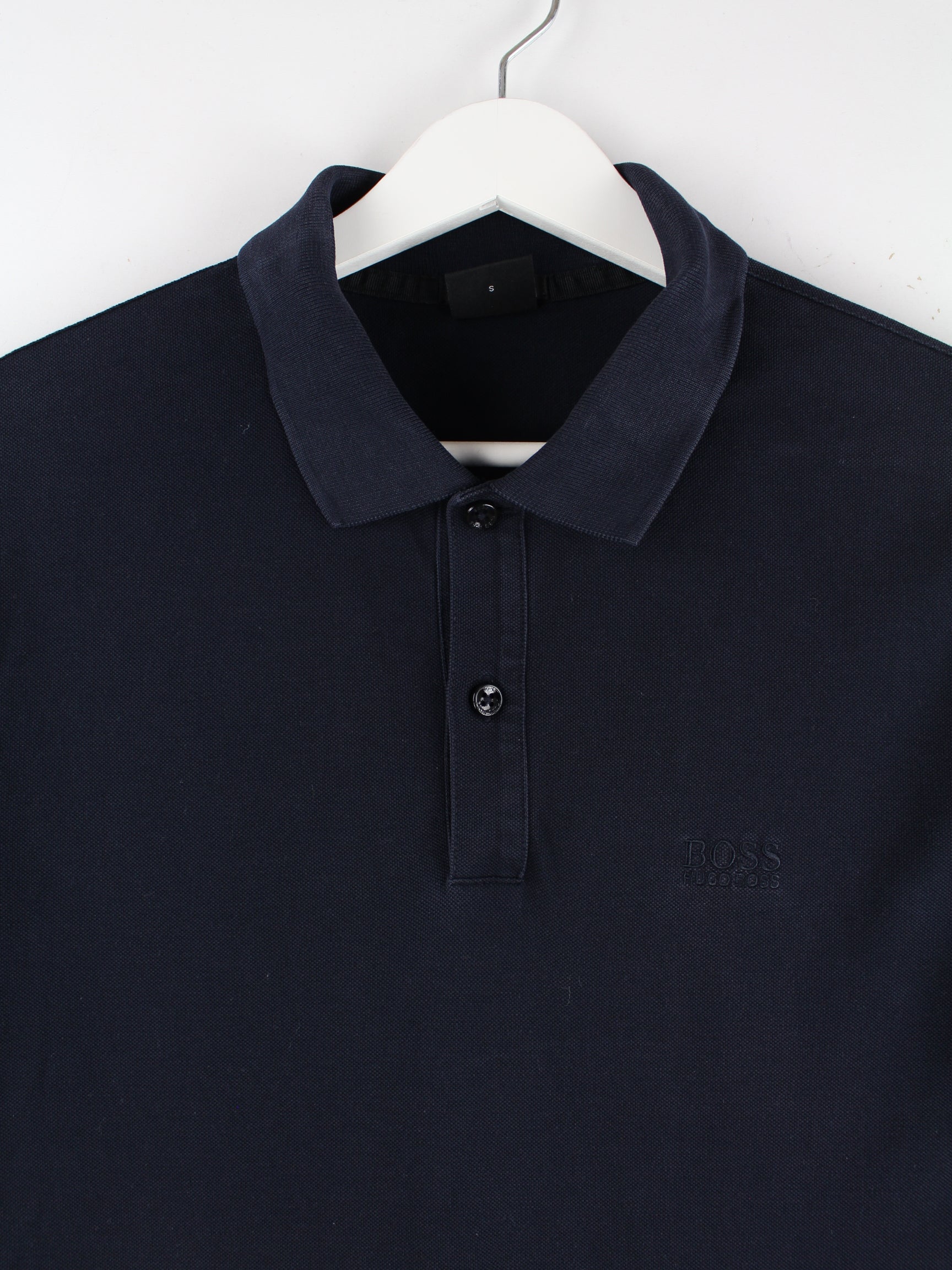 Poloshirt vom Label Hugo Boss in Größe S. Es ist aus Baumwolle hergestellt und in Blau vorrätig.