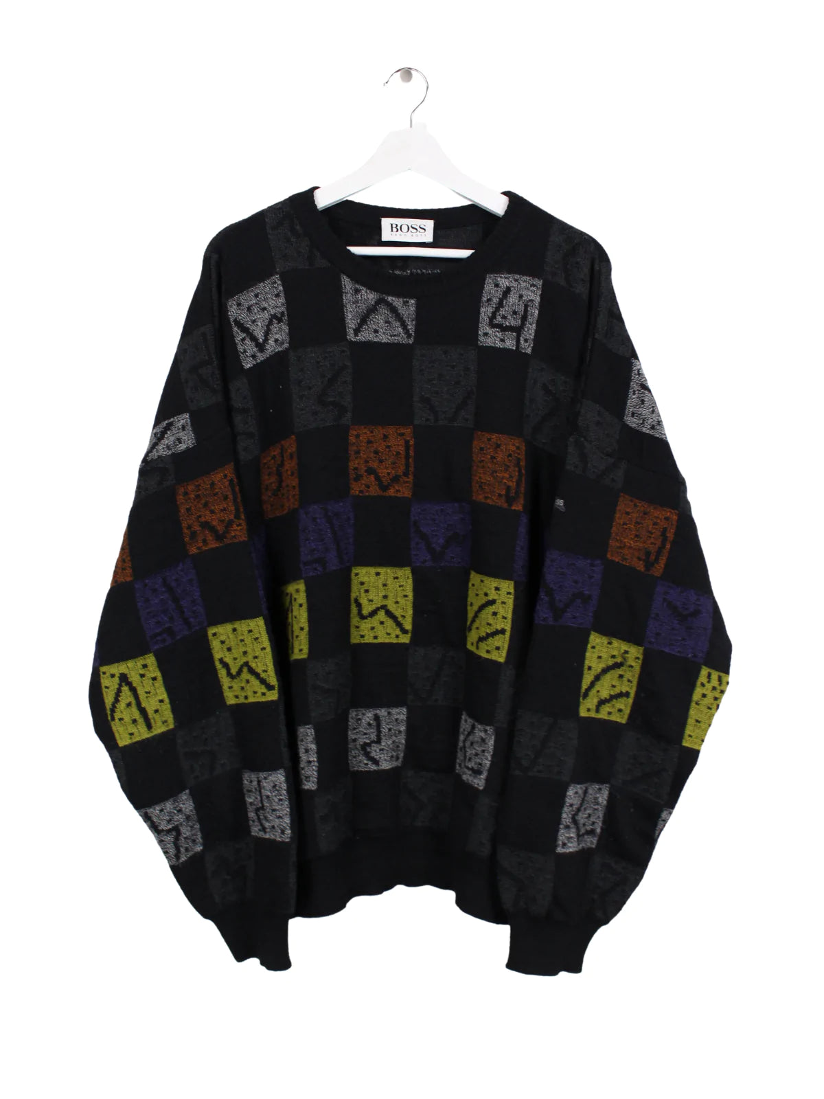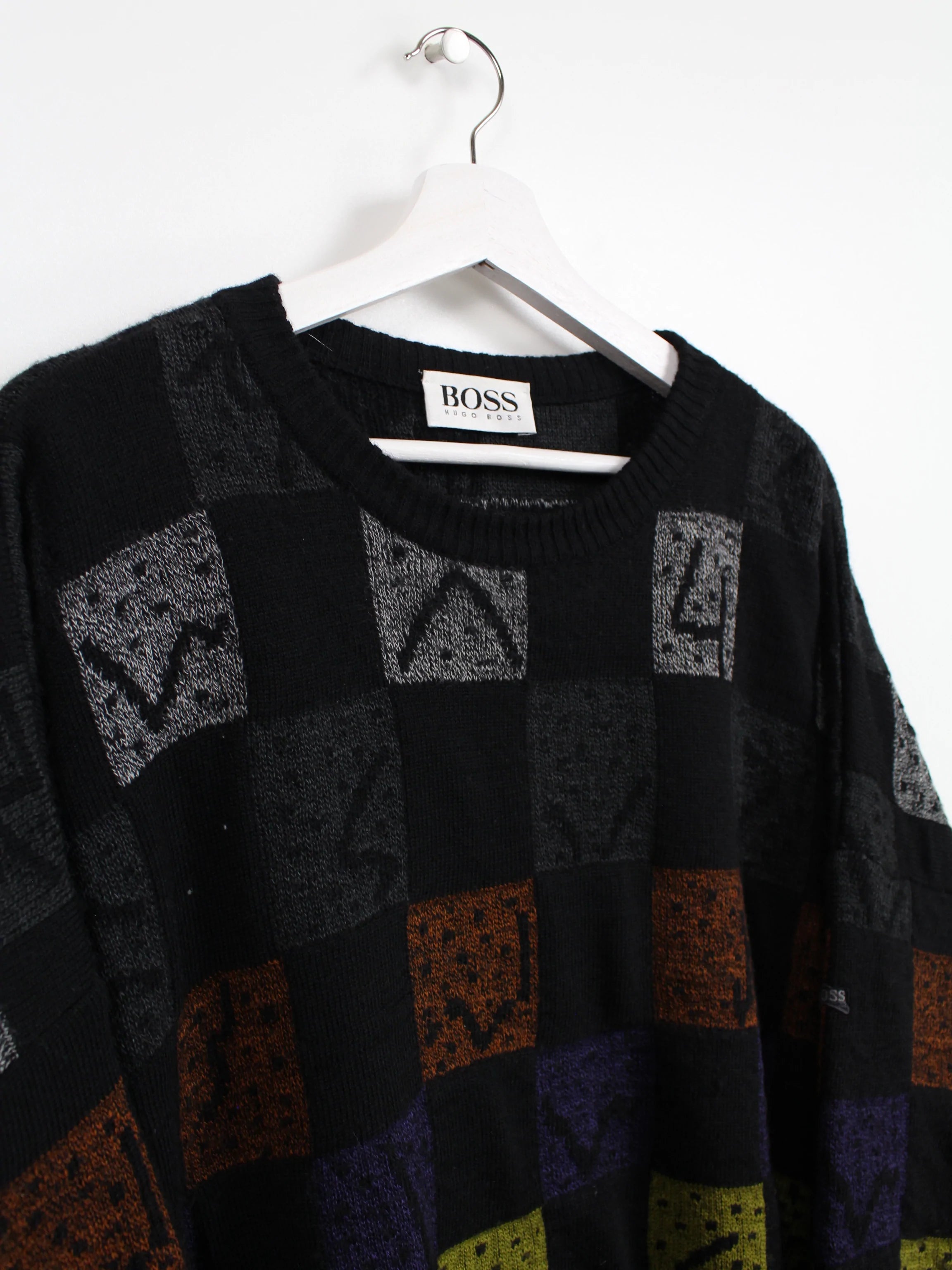Schicker 90s Strickpullover der Marke Hugo Boss, im karierten Retro Look.